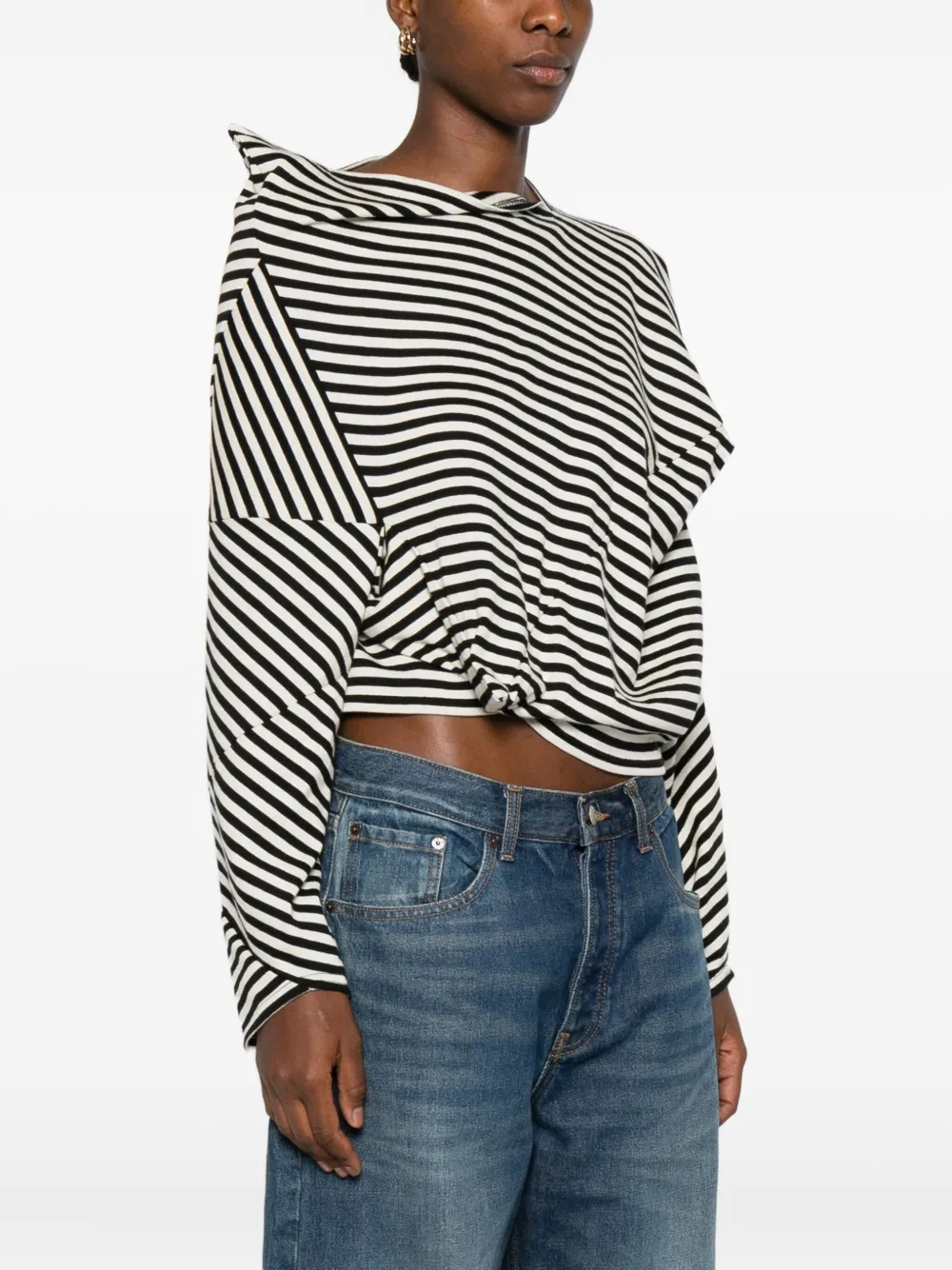 черно-белый в полоску с узлом, длинные рукава, круглый вырез