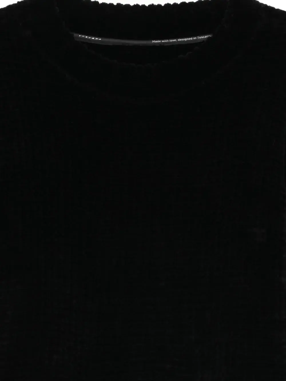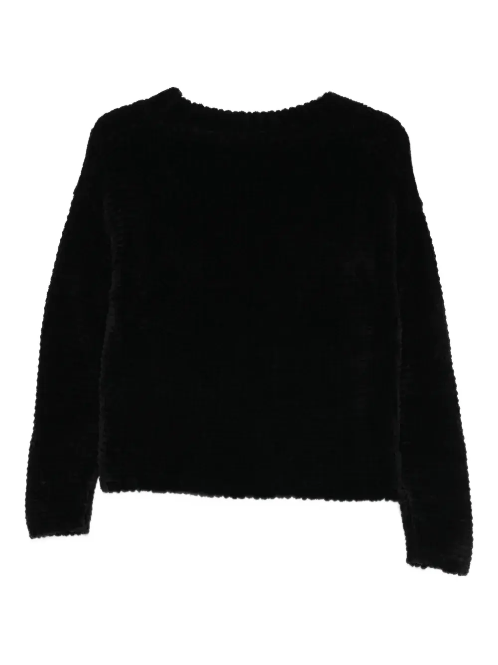 черный джемпер с плетёным узором, круглым вырезом и длинными рукавами