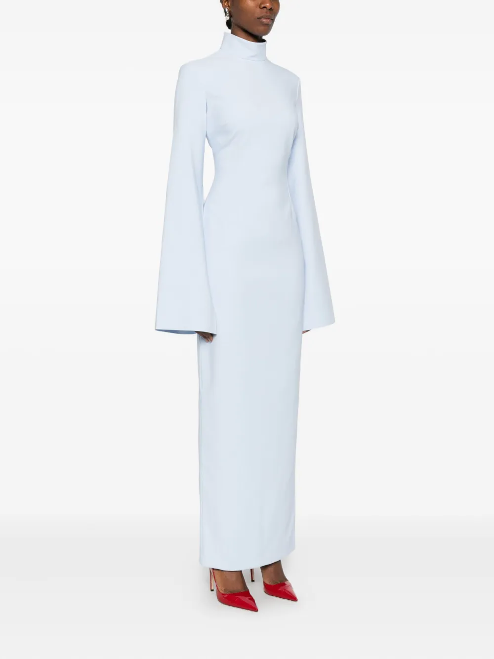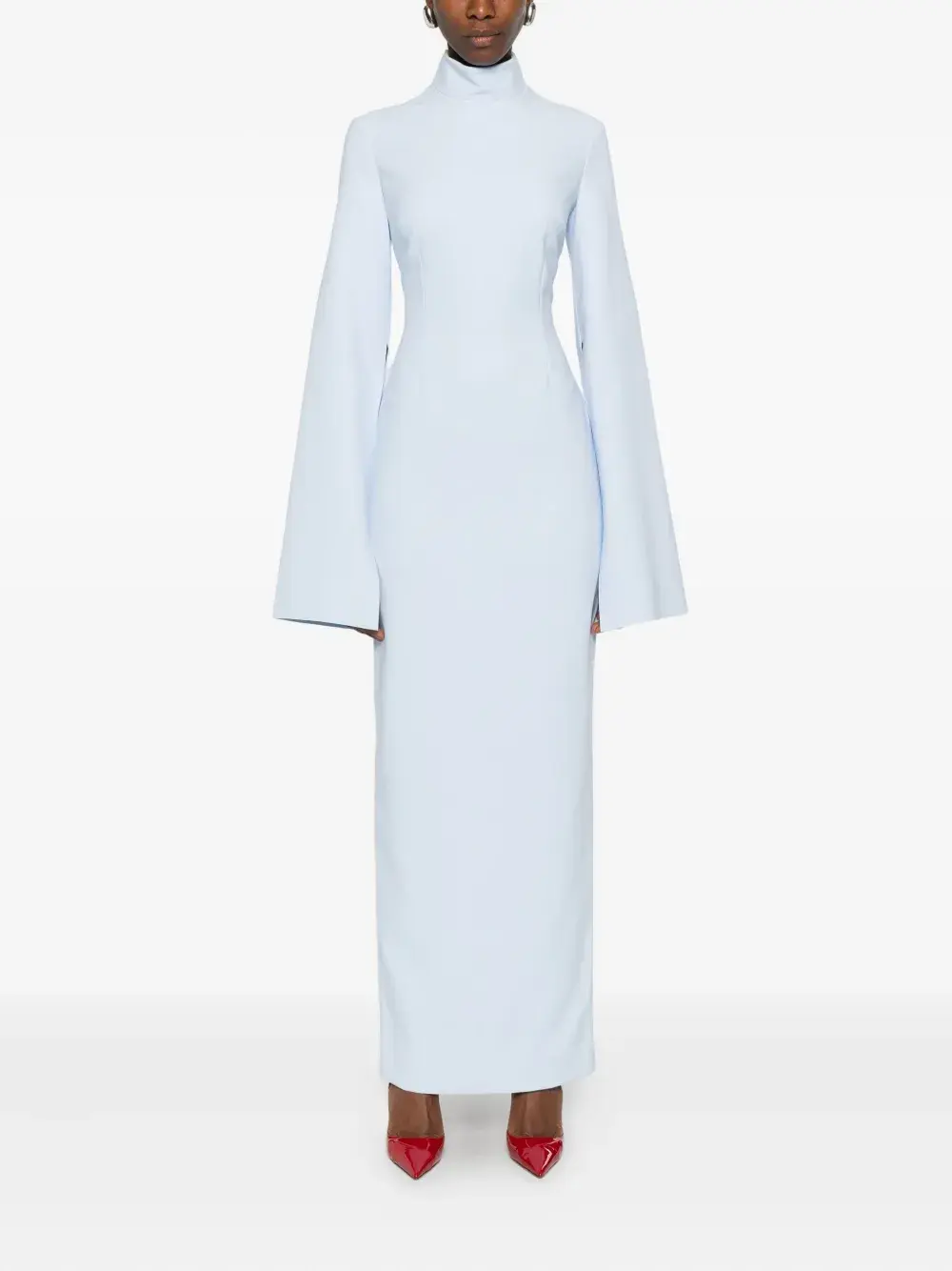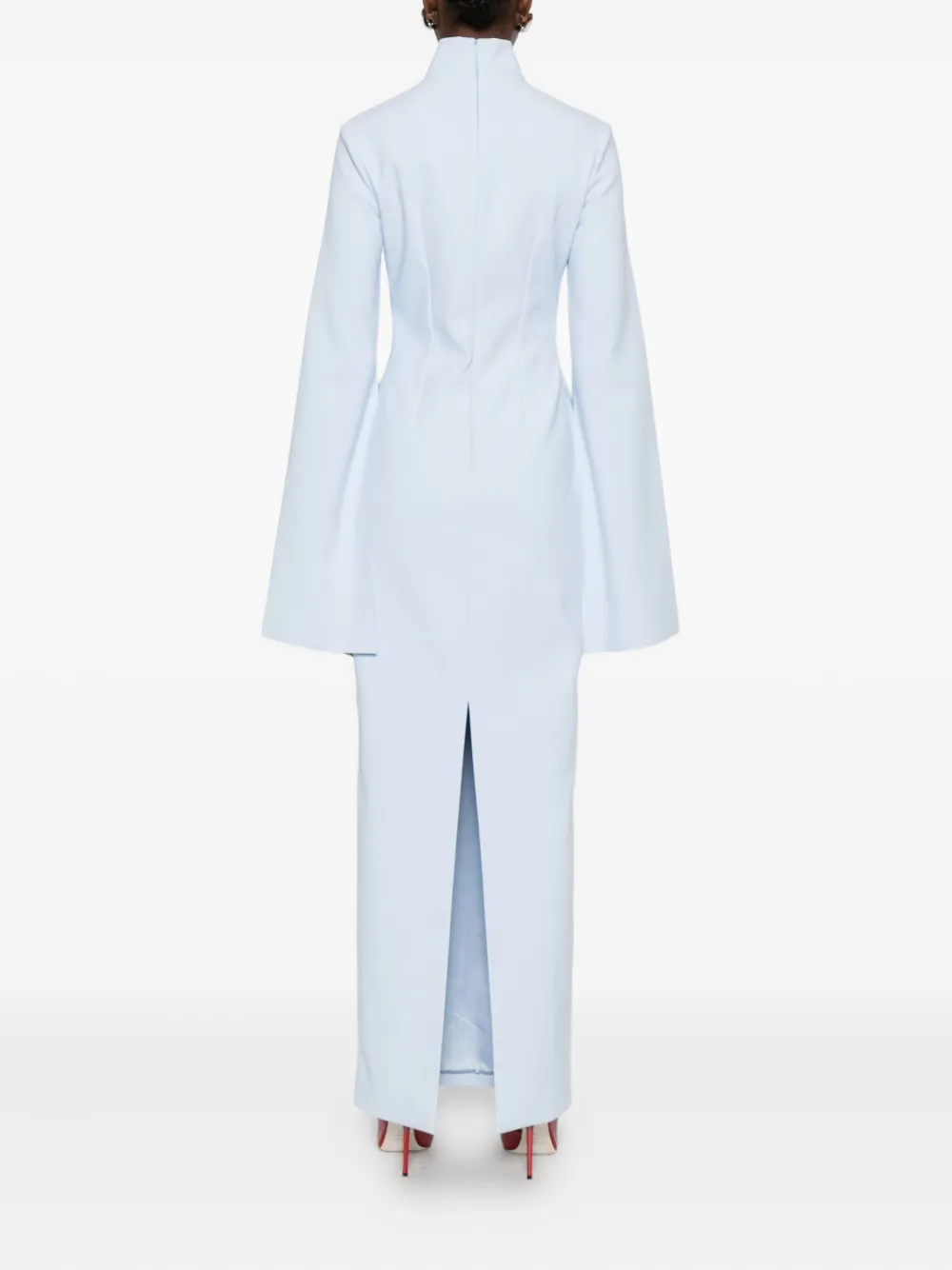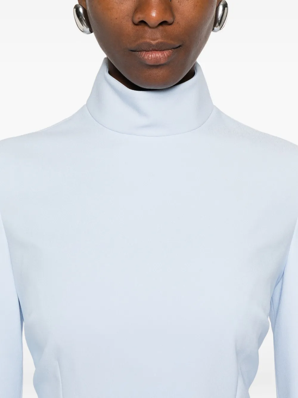 синий, высокий воротник, длинные рукава, скрытая застежка-молния сзади