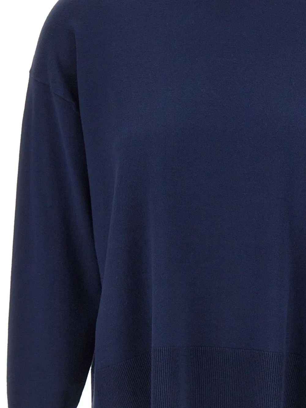 синий цвет, круглый вырез, длинные рукава, ребристый нижний край, ребристые манжеты, боковые разрезы