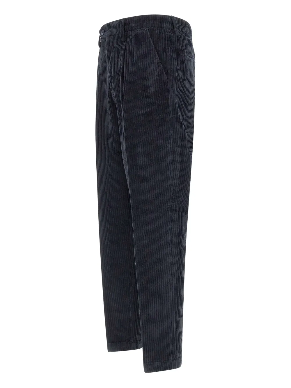 синий вельвет, текстурированный, передние вытачки, боковые карманы, задние карманы, застёжка на пуговицу