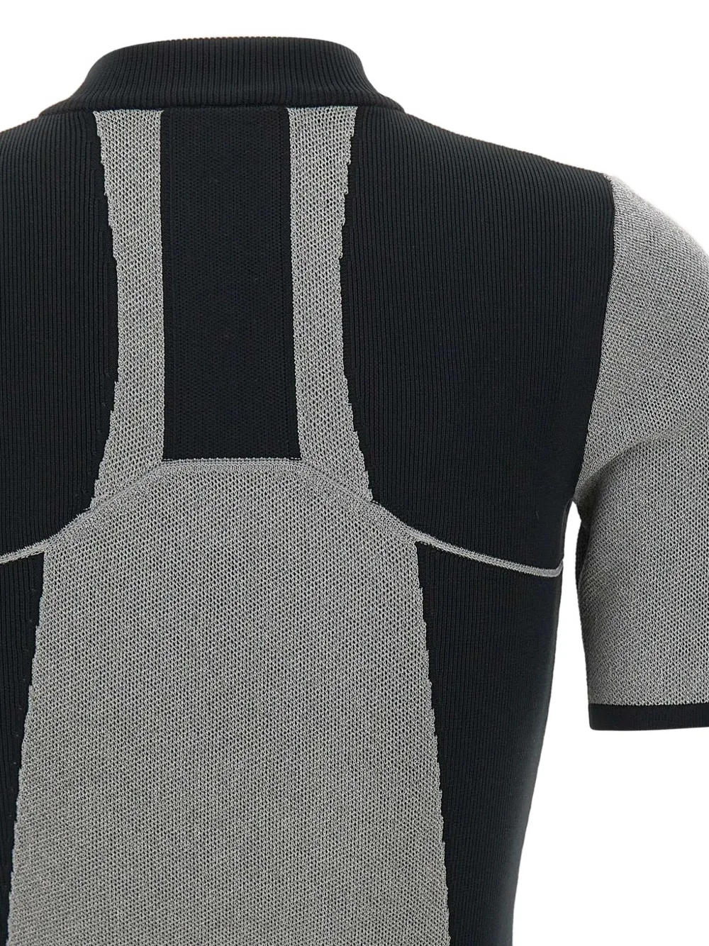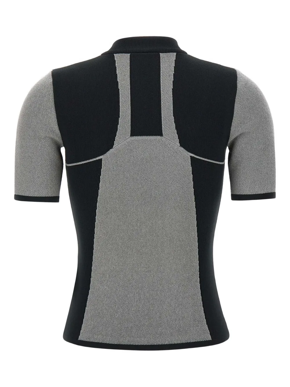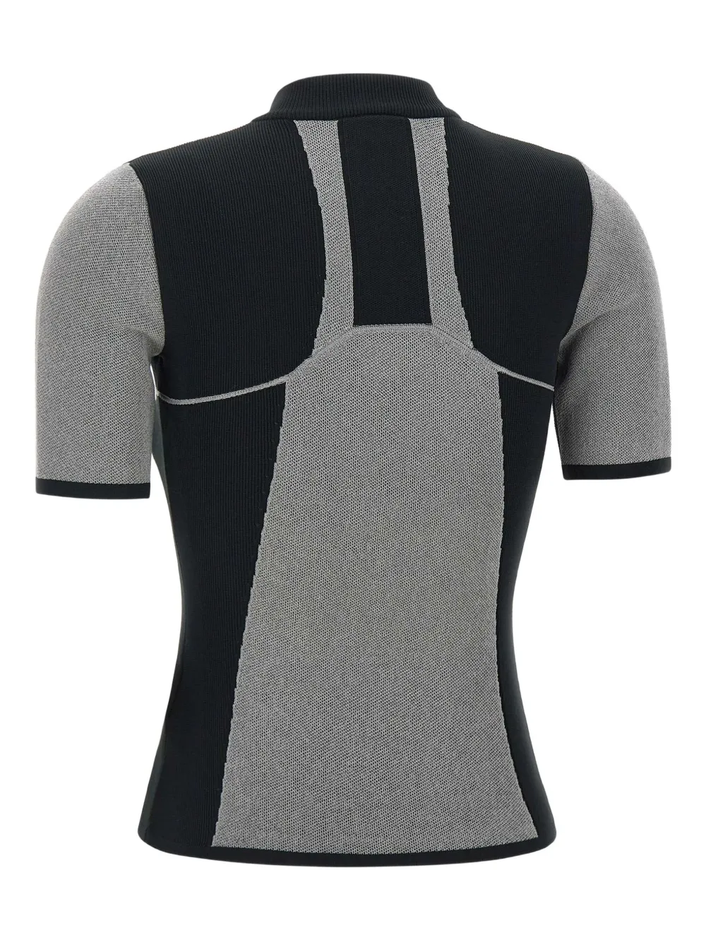 чёрная куртка с панелями, стоячим воротником, застёжкой на молнии и короткими рукавами