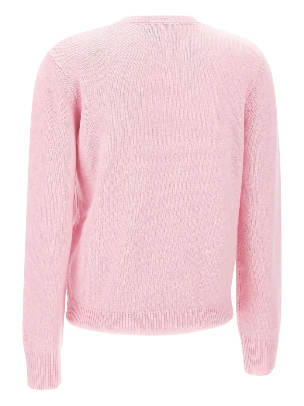 розовый свитер с вышивкой, круглым вырезом и длинными рукавами