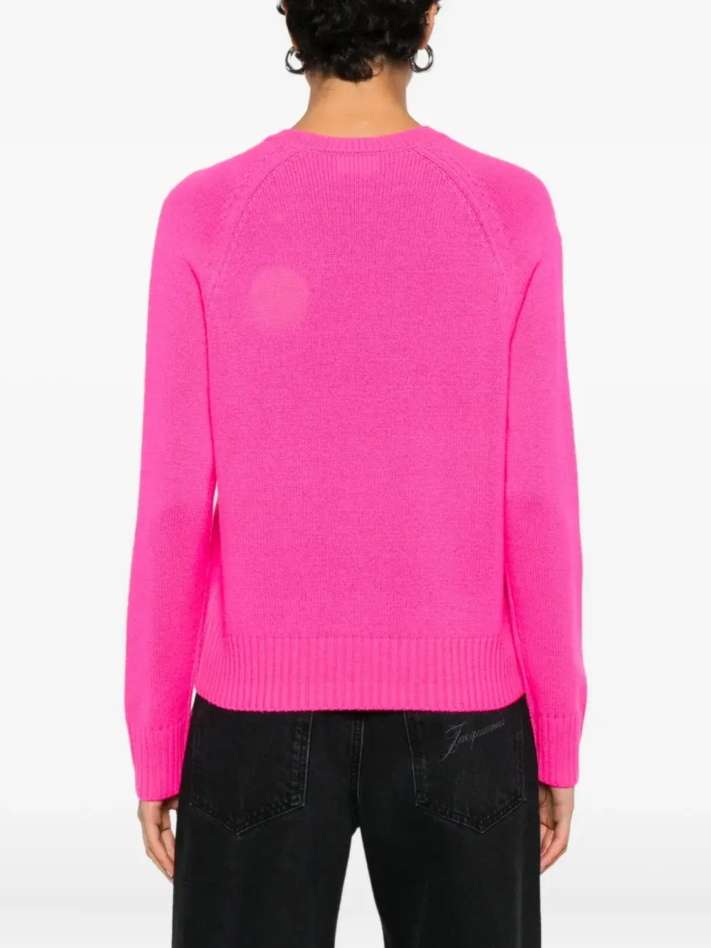 ярко-розовый круглый вырез, длинные рукава, ребристая отделка, мотив в виде сердца, надпись Paris