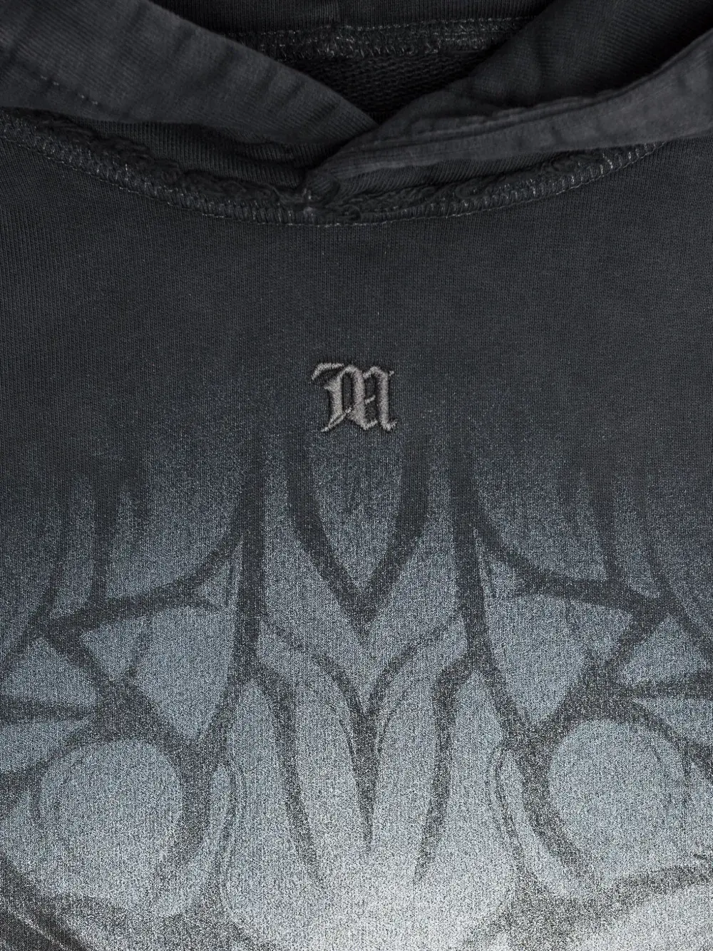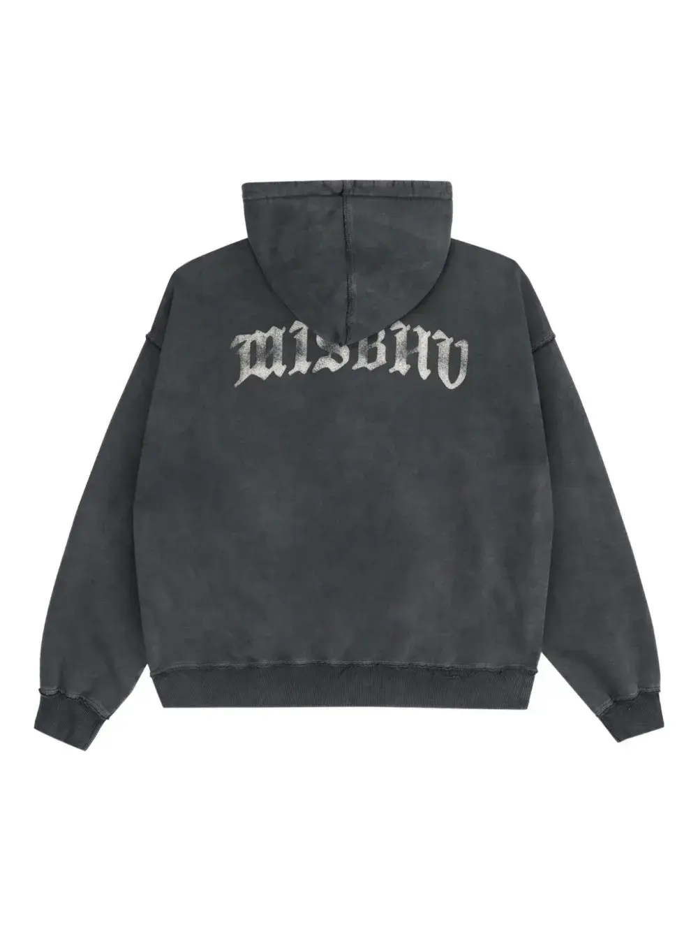 серый цвет, графический принт, манжеты и низ в рубчик, спущенные плечи, эффект выцветания по всей поверхности