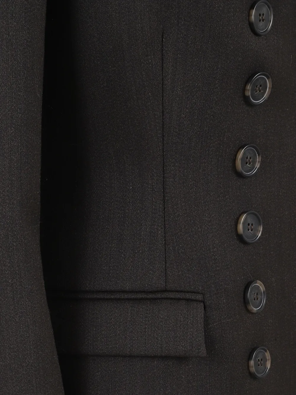 коричневый шерстяной двубортный пиджак с застежкой на пуговицы, лацканами с вырезом и клапанами на карманах