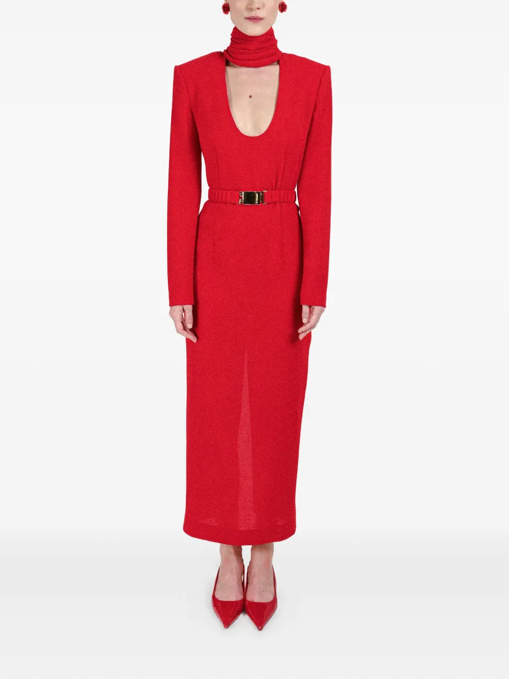 Платье с драпировкой и поясом Rowen Rose, красный