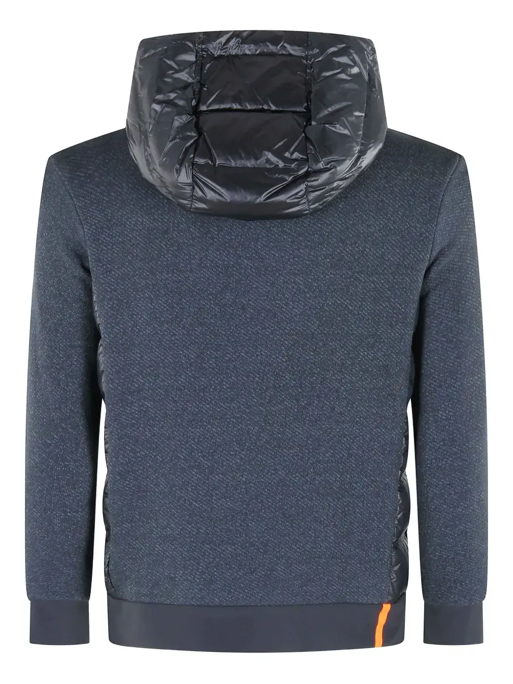 синий капюшон на молнии спереди длинные рукава ребристый низ манжеты в рубчик