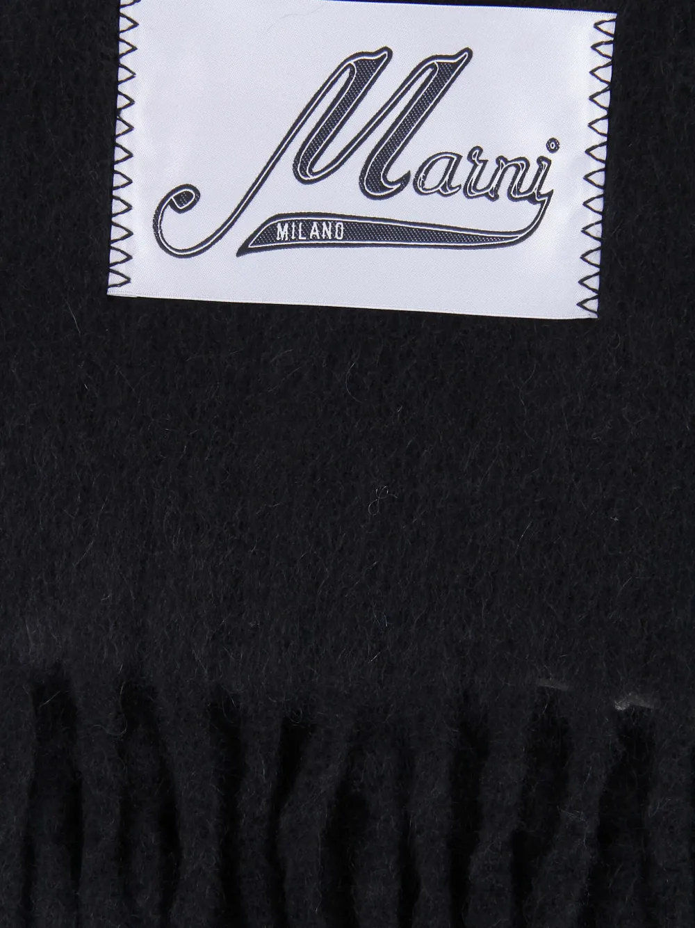 черная смесь альпаки, бахрома по краям, нашивка с логотипом