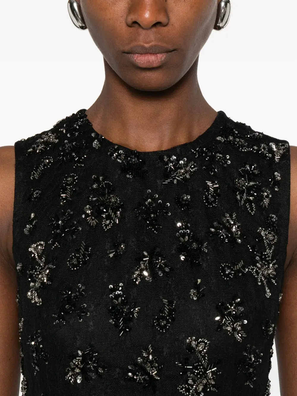 черный топ без рукавов с круглым вырезом и декором из бусин