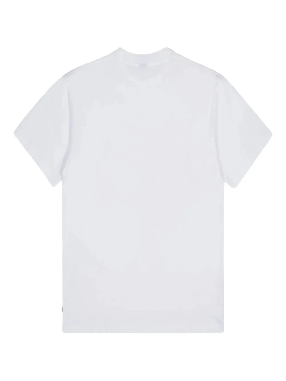 белая футболка с круглым вырезом, принтом-логотипом и короткими рукавами, нашивкой с логотипом