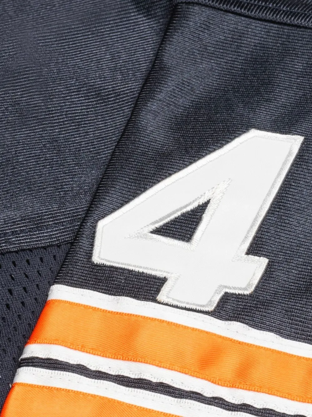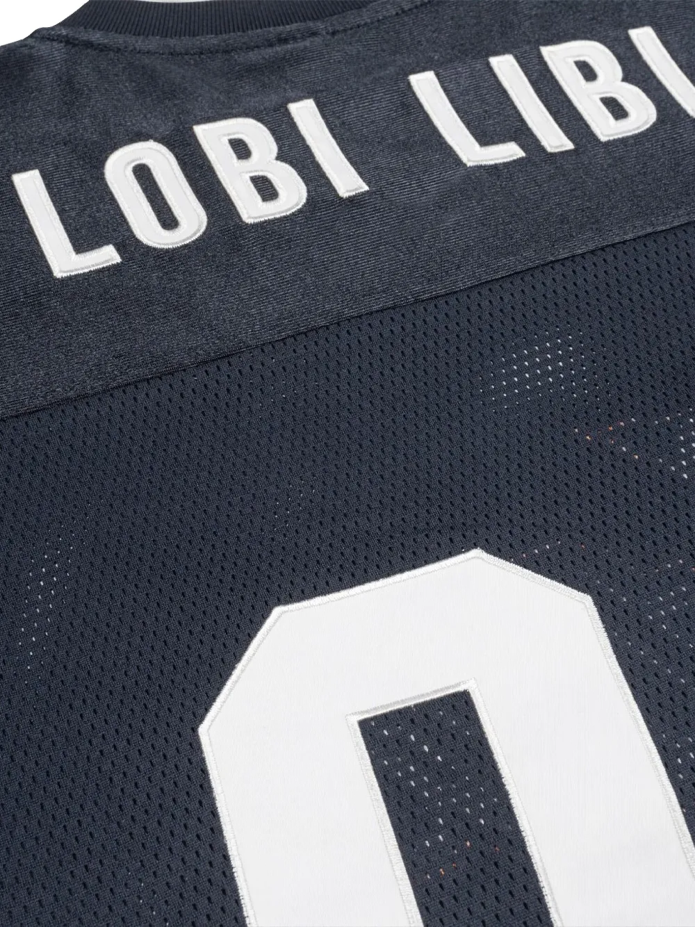 синий вязаный топ из сетки с аппликацией в виде звезды, полосатой отделкой, круглым вырезом и короткими рукавами