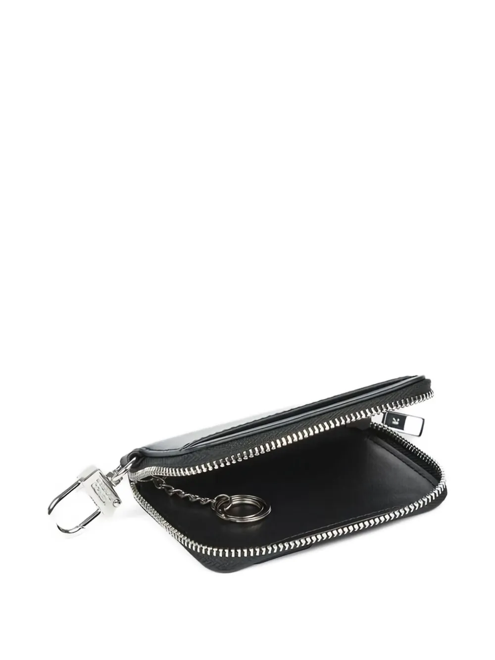 черная застежка-крючок, застежка на молнию, два внешних слота для карт, логотип