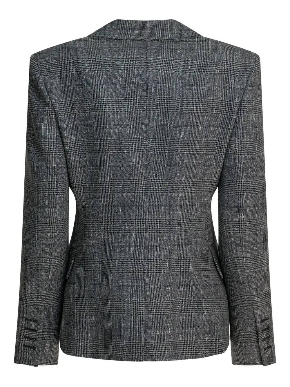 серый жакет в клетку с застежкой на пуговицы, лацканами с вырезом, передними карманами с клапанами и манжетами на пуговицах