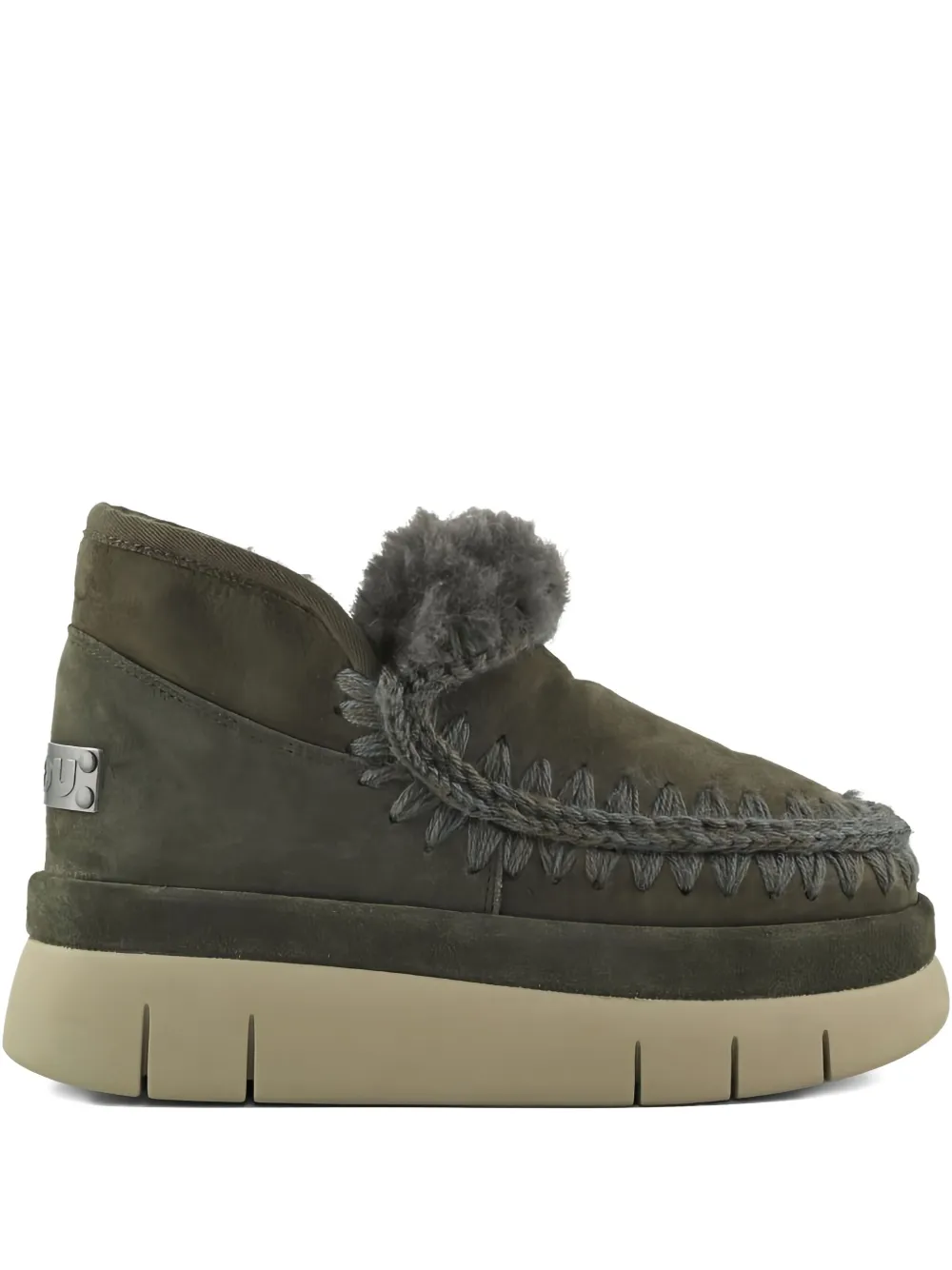 черные ботинки с отделкой из оливкового меха, на платформе, с круглым носком