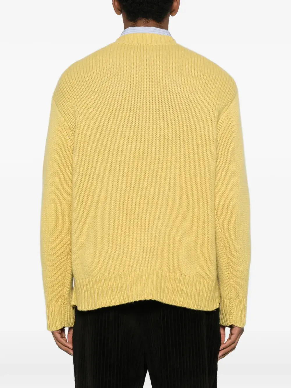 жёлтый рубчатый вязаный джемпер с круглым вырезом, длинными рукавами и прямым подолом