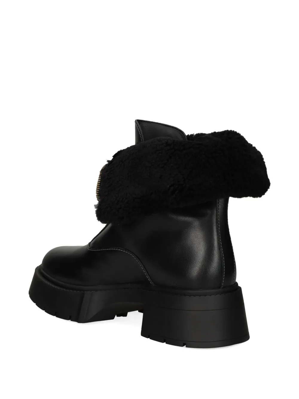черная отделка из овчины, застежка-молния, фурнитура золотистого оттенка, подошва-платформа