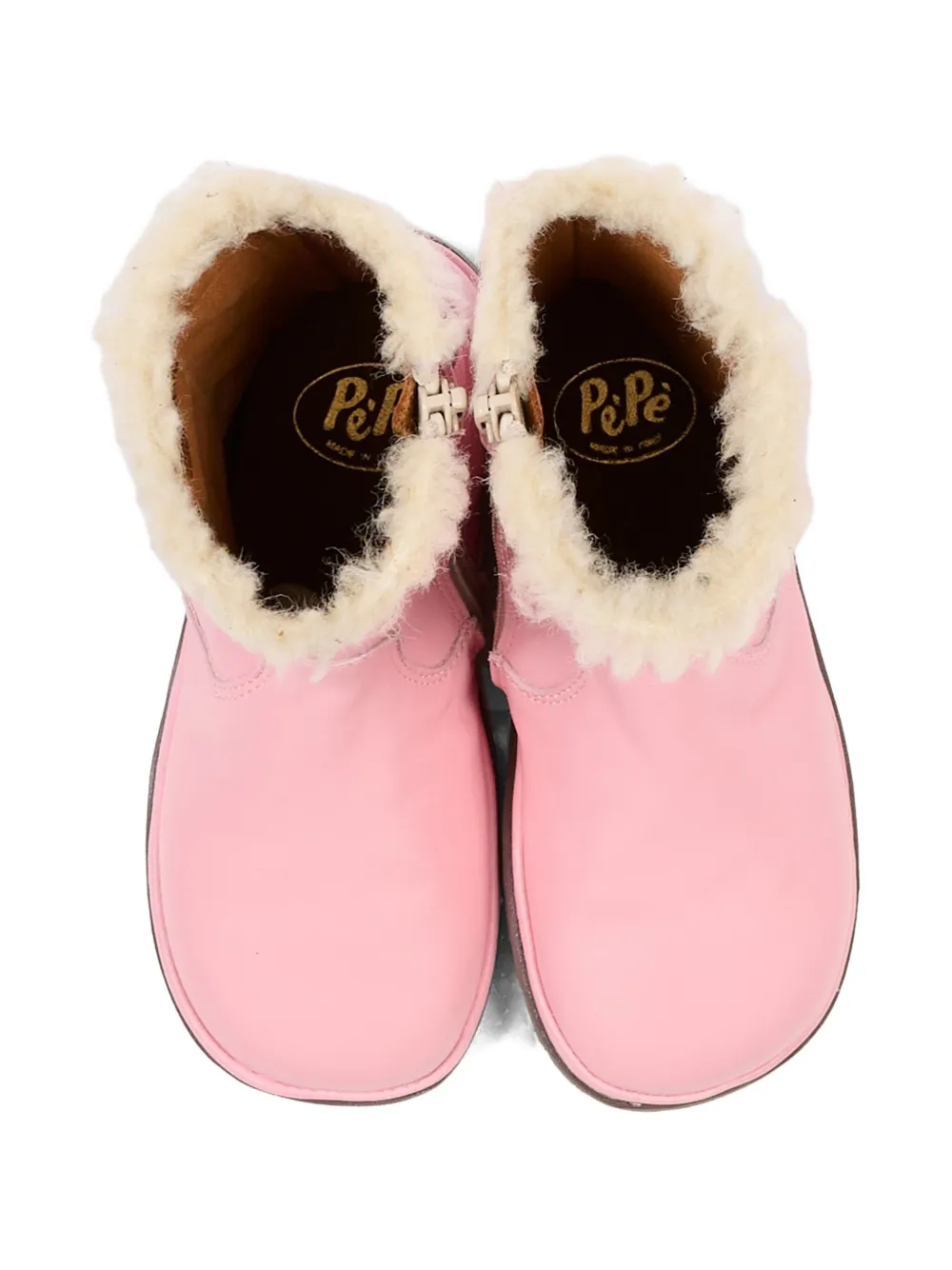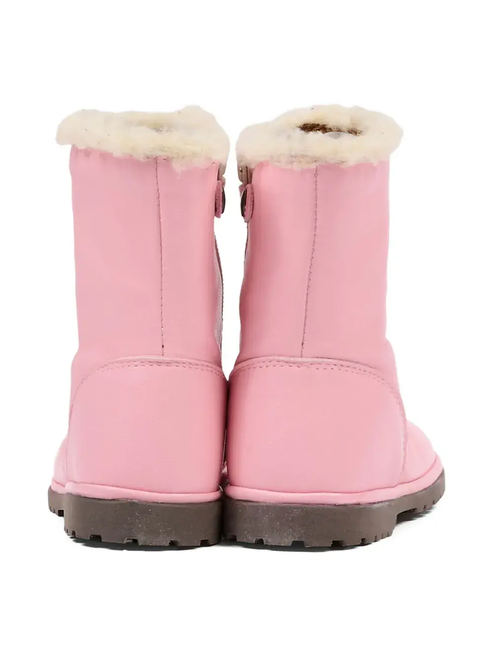 розовая отделка из шерсти, застежка-молния, прошивка, рифленая подошва, кожа