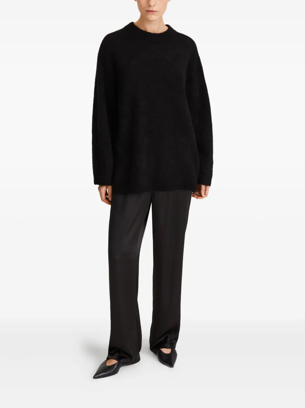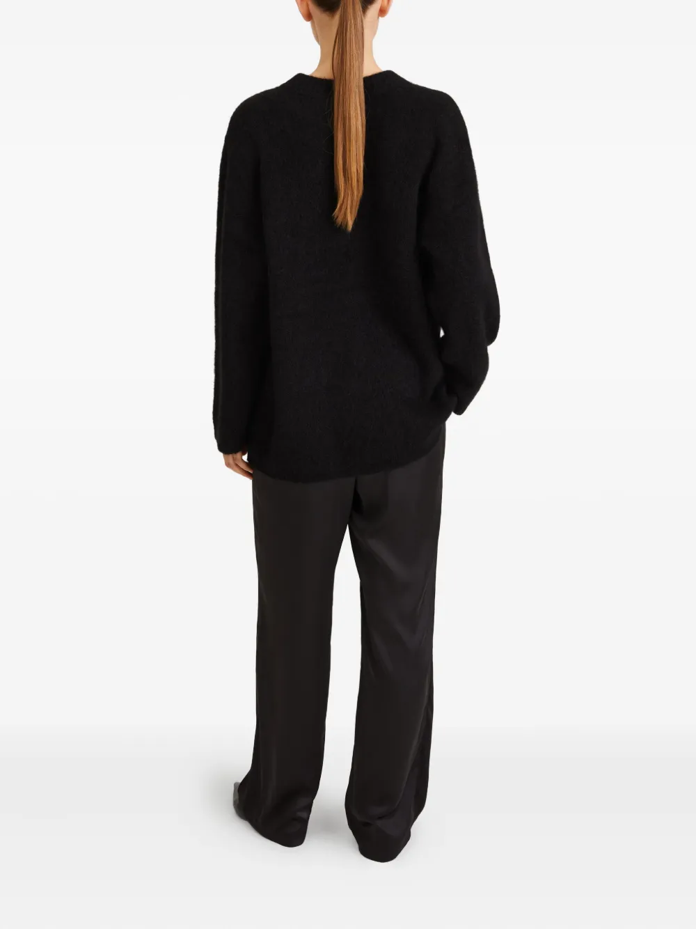 черный с круглым вырезом, длинными рукавами, текстурированный