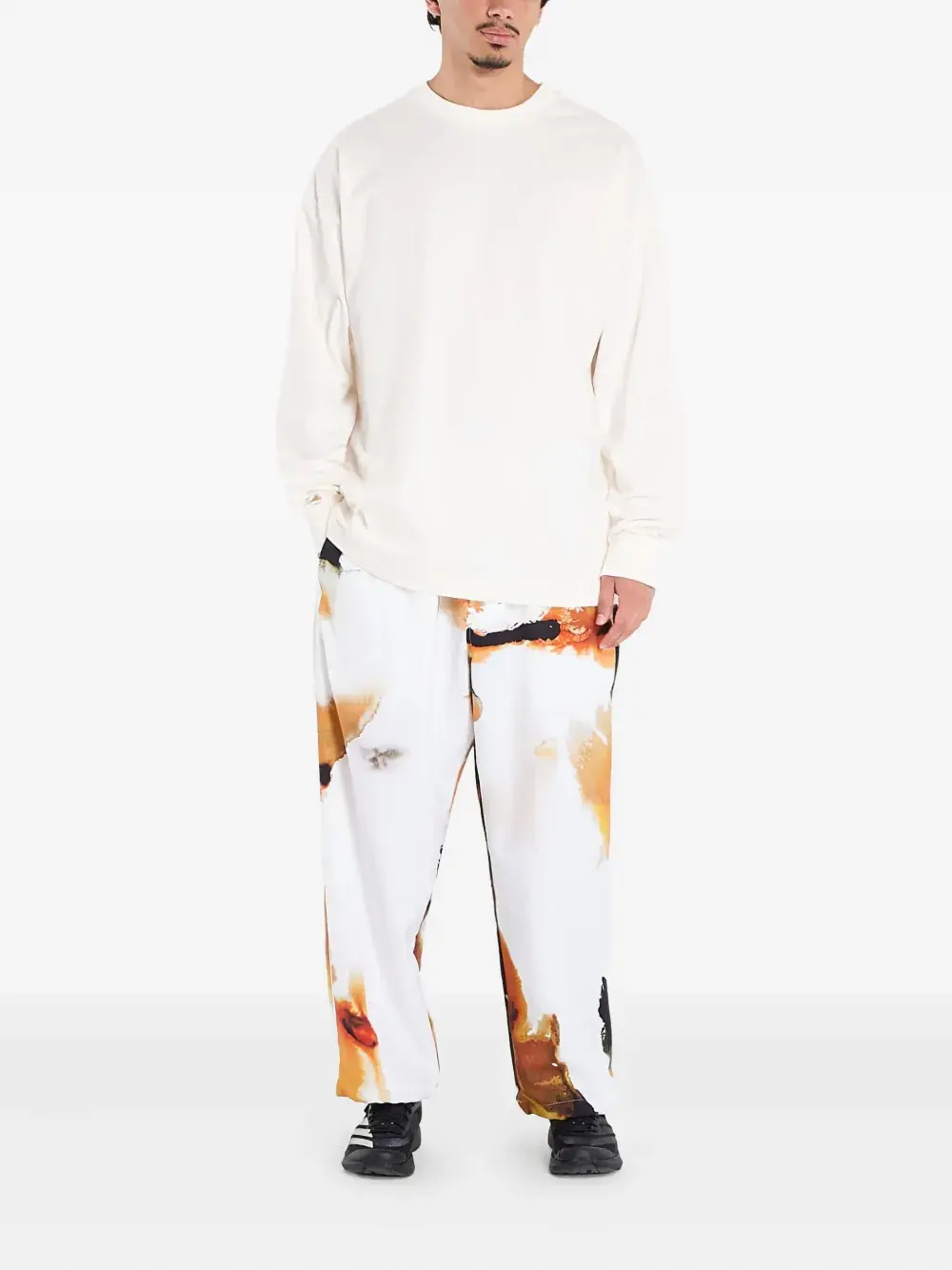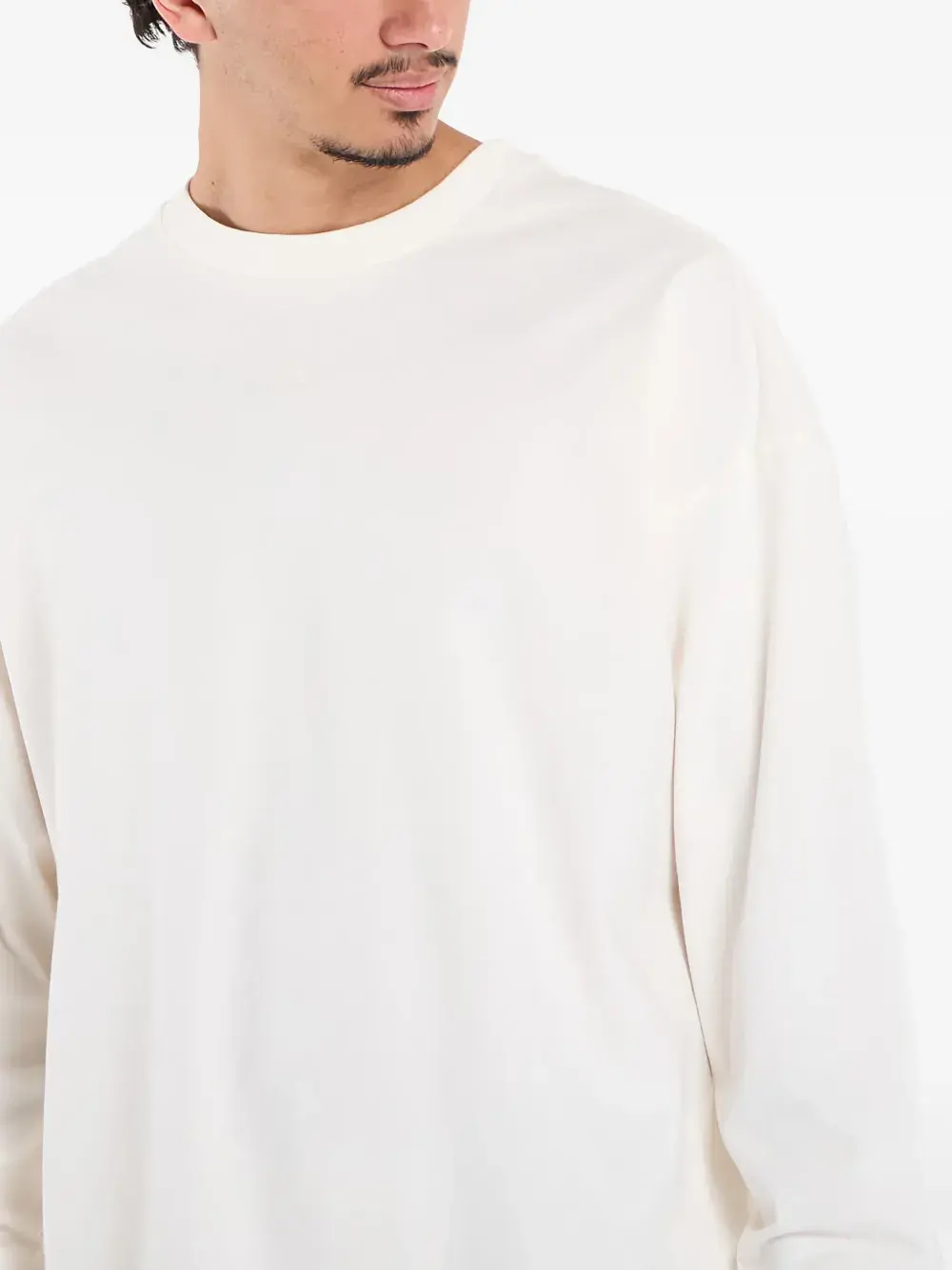 белая футболка с длинными рукавами, круглым вырезом и логотипом