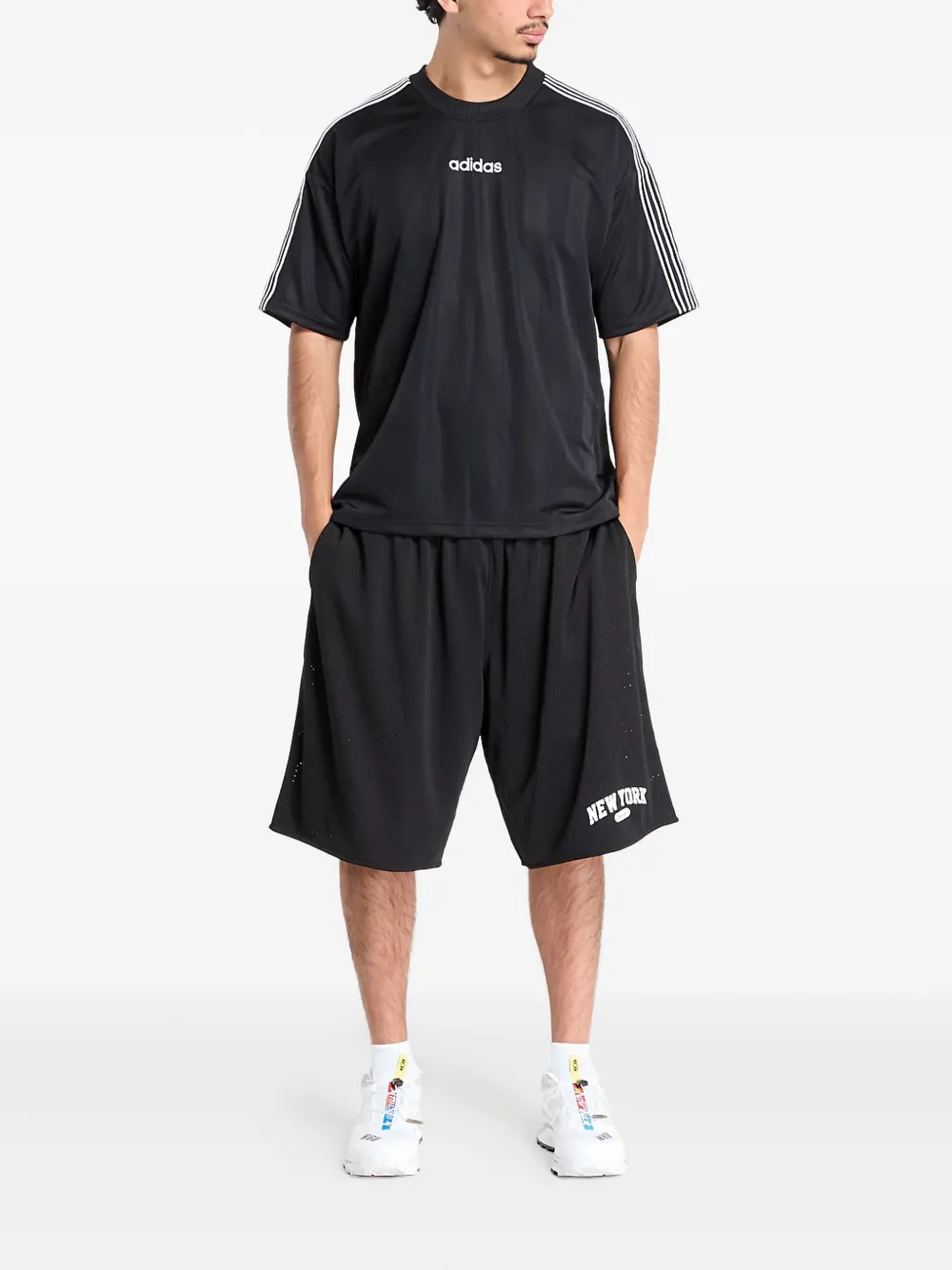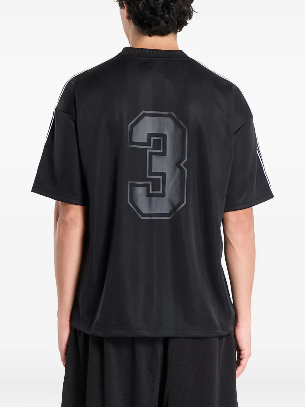 черные полоски, номер «3» на спине, короткие рукава, круглый вырез