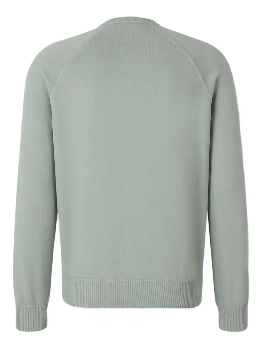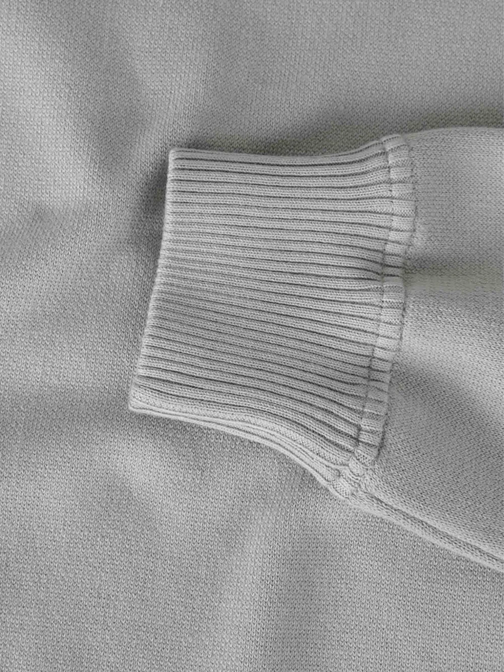 серый свитер с круглым вырезом, ребристым низом и манжетами