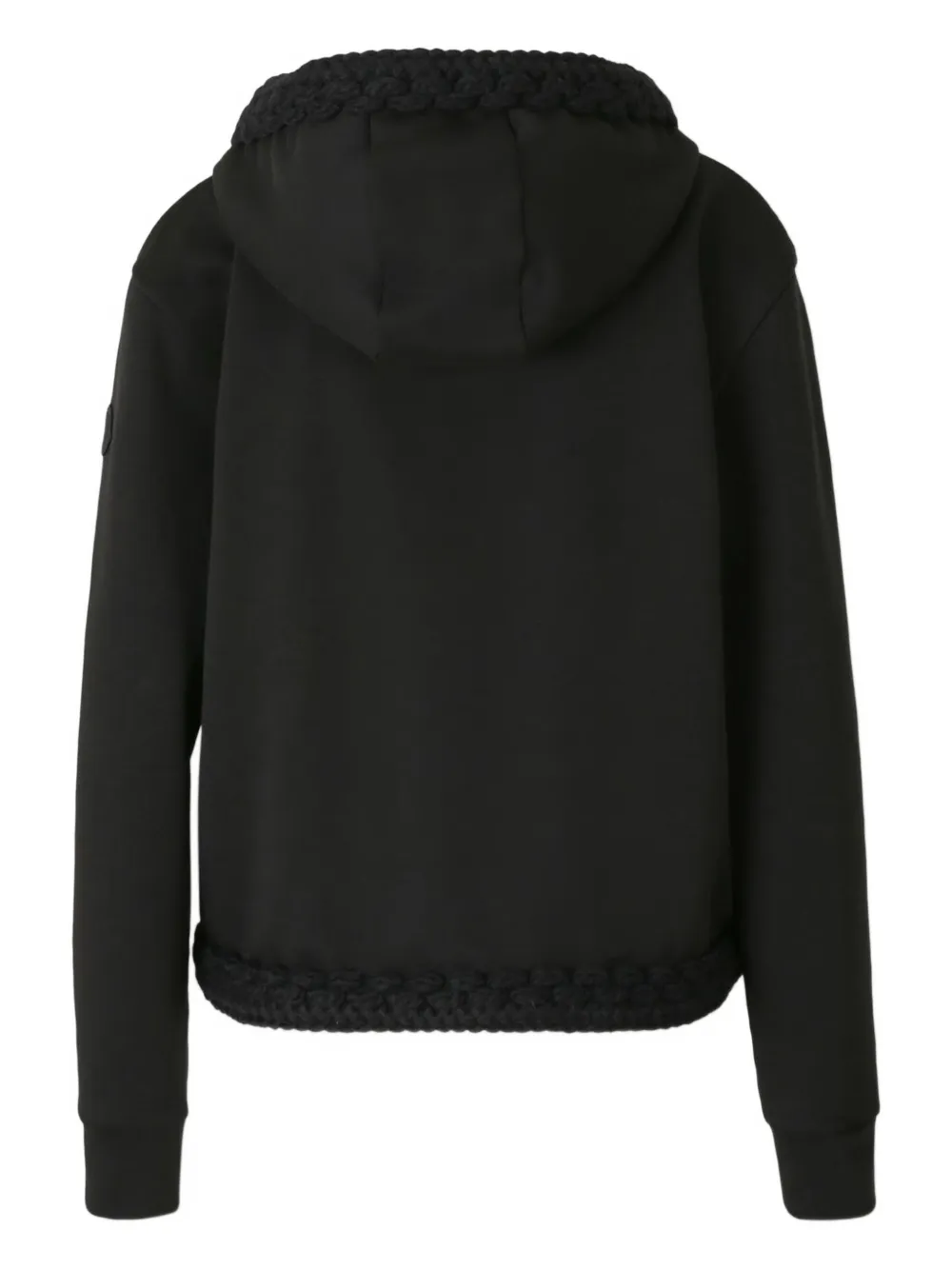 чёрная шерсть, отделка в рубчик, капюшон со шнурком, застёжка-молния спереди
