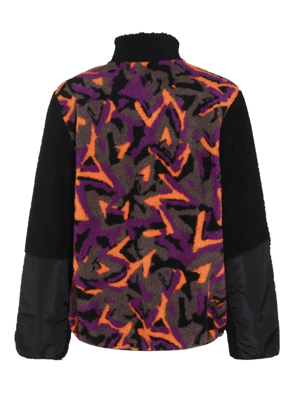 чёрная и оранжевая узорчатая куртка на молнии с длинными рукавами и нагрудным карманом