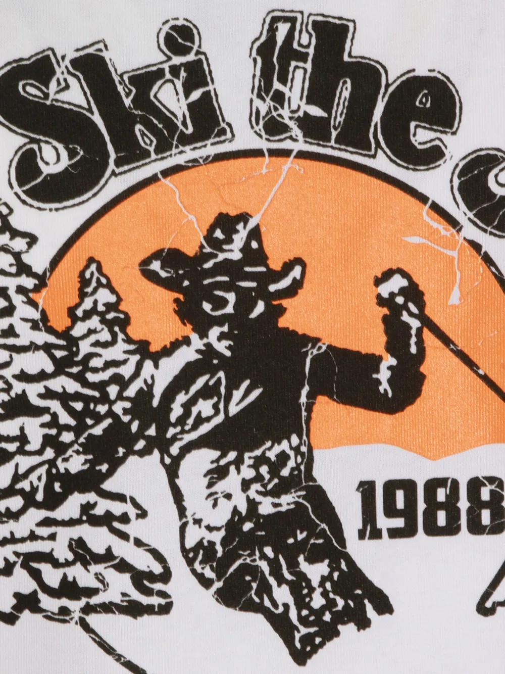 белая футболка с графическим принтом, круглым вырезом и короткими рукавами из хлопка