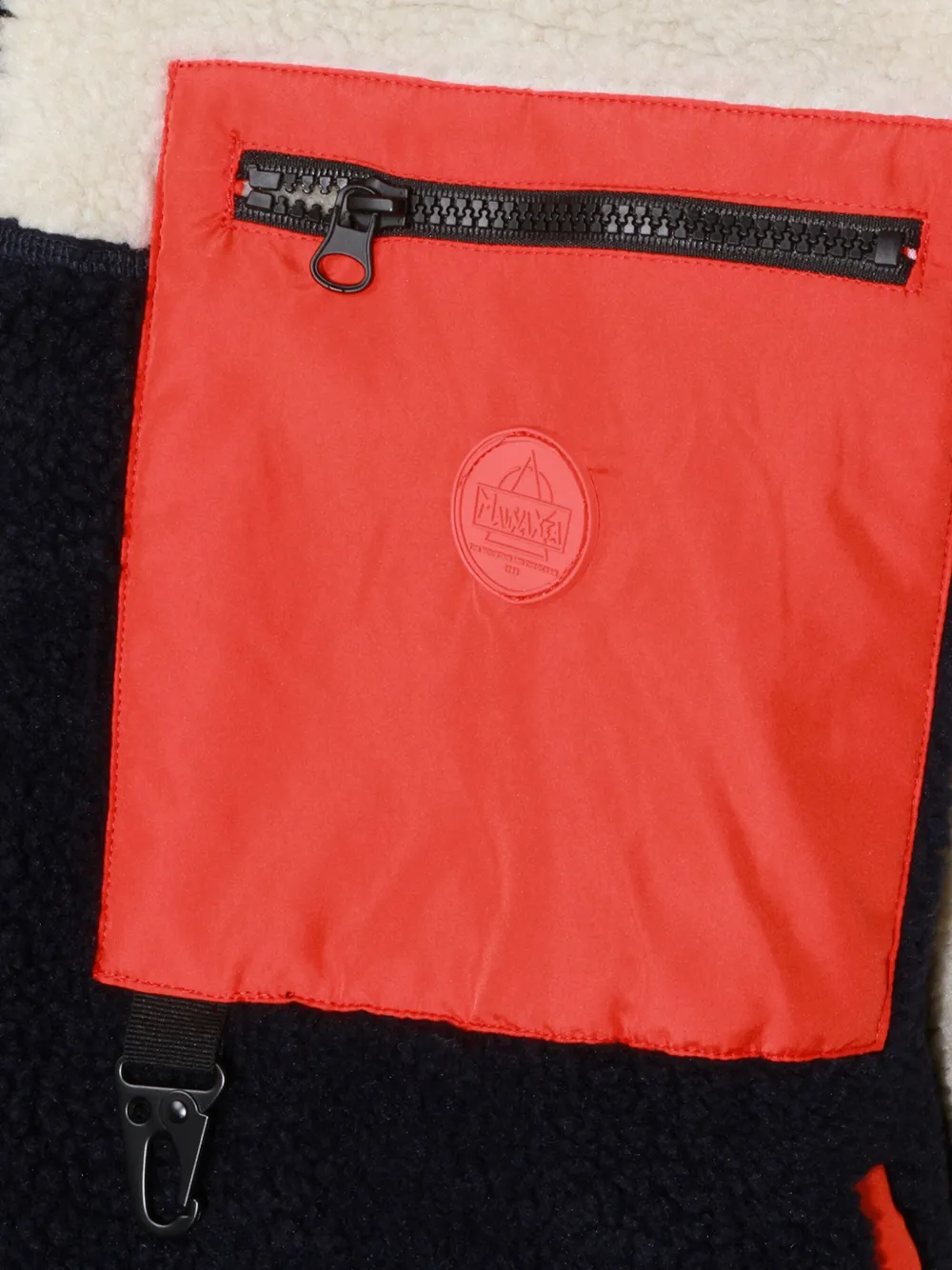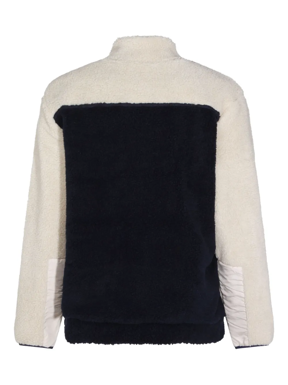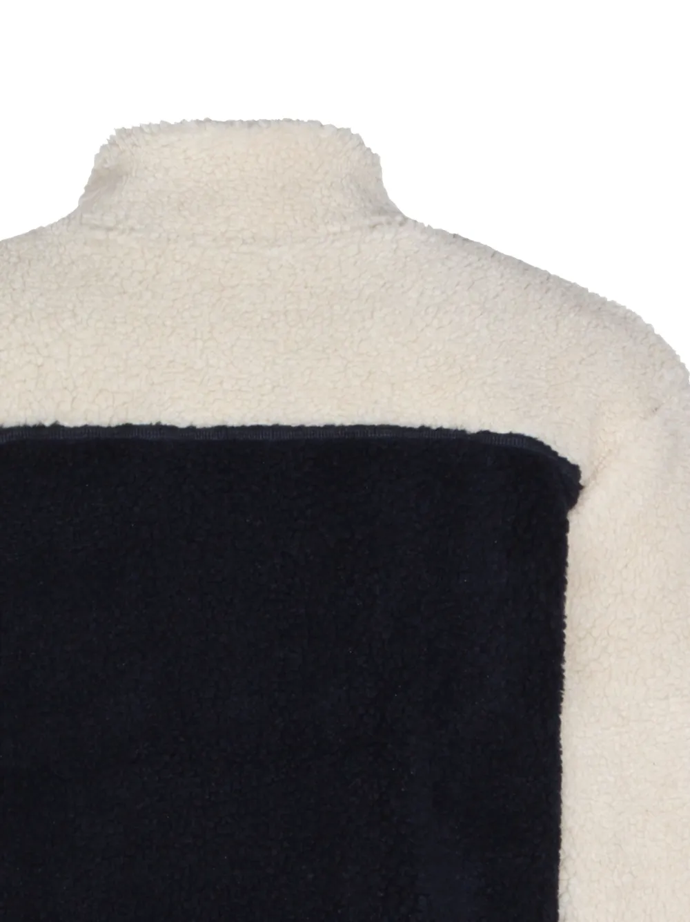 черный флисовый материал, застежка-молния, накладной карман, длинные рукава, высокий воротник