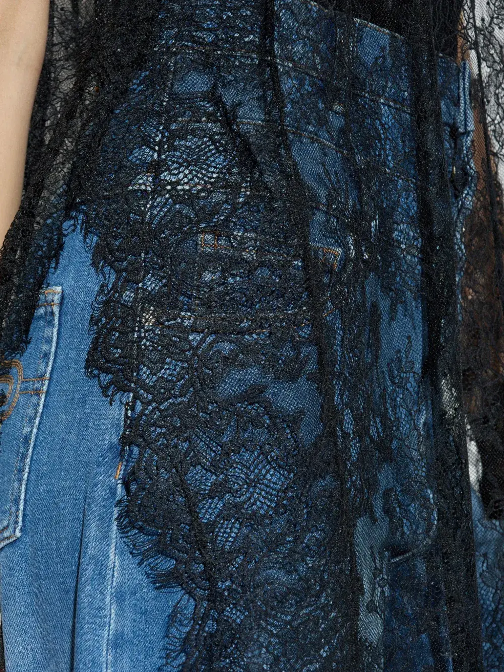 черное кружевное полотно, зубчатый край, бретельки-спагетти, длина миди