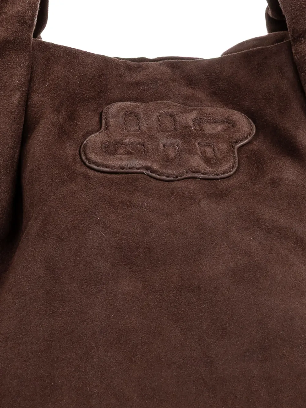 верхняя ручка из замши ягнёнка цвета мокко с логотипом, съёмный ремень