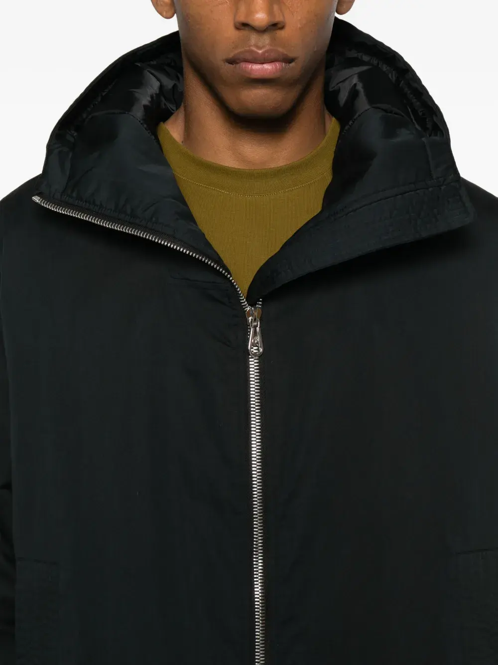 черный худи, застежка-молния, передний карман, длинные рукава, прямой низ