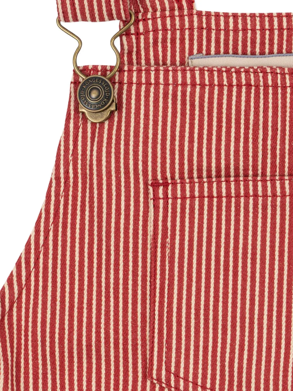 красный полосатый узор, регулируемые бретели, накладной карман, застежка на пуговицы