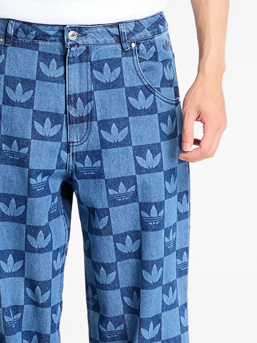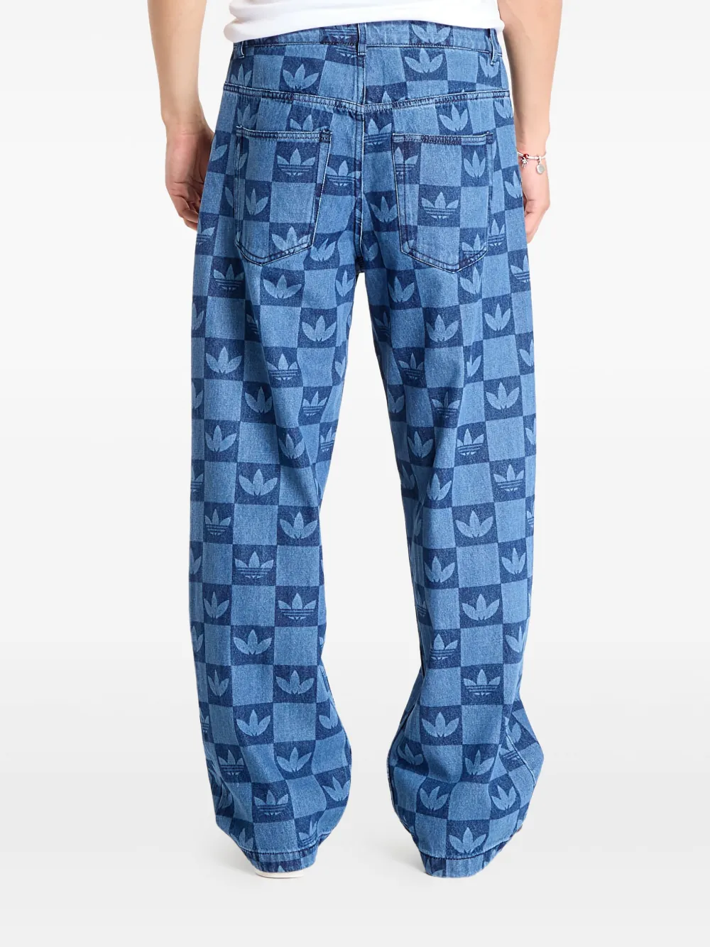 синие хлопковые джинсы с монограммой и шлевками для пояса