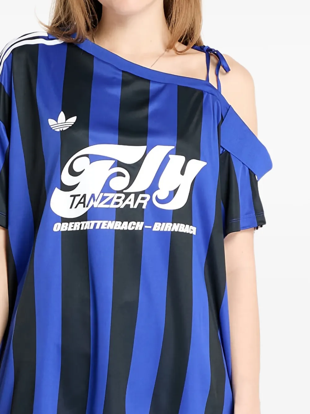 Полосатый топ из джерси с открытыми плечами Adidas, синий