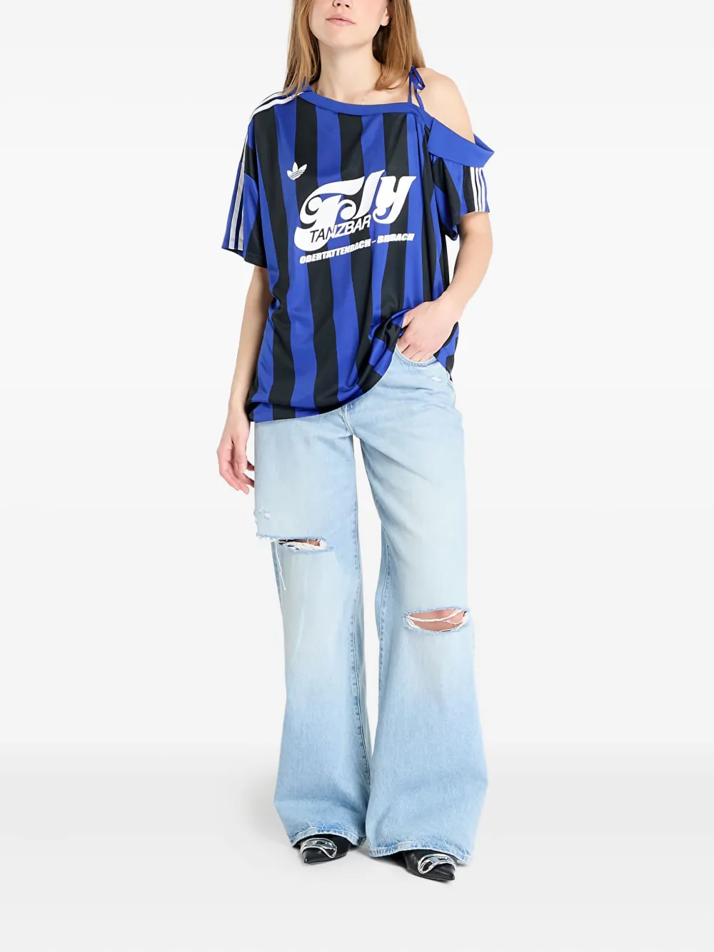 Полосатый топ из джерси с открытыми плечами Adidas, синий 10 759₽