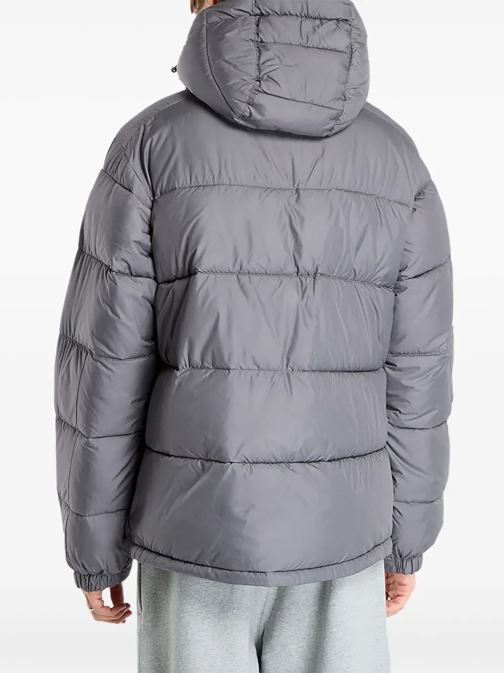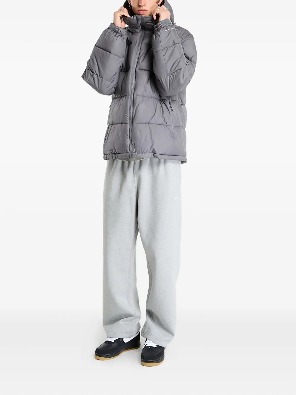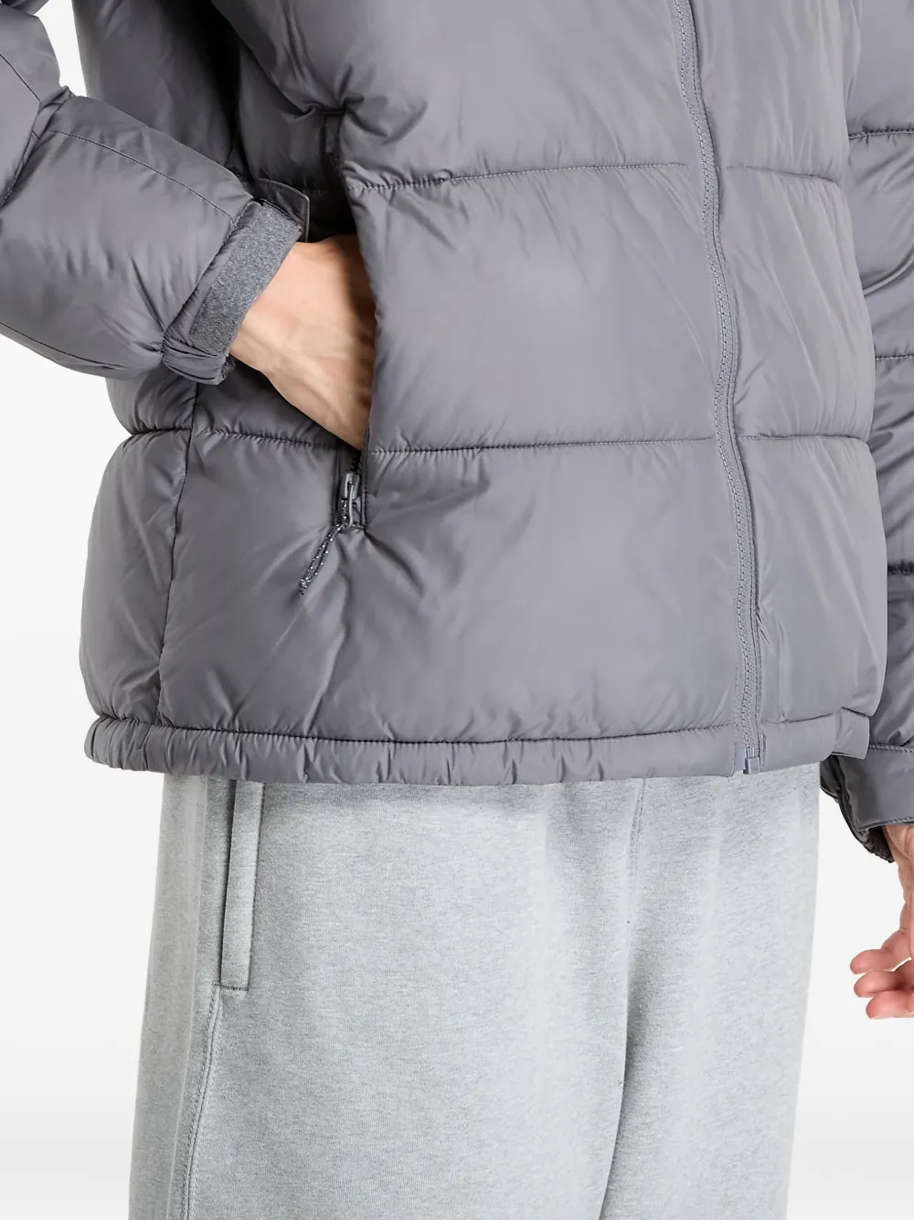 серый худи на молнии с капюшоном, боковыми карманами на молнии, логотипом и стеганым дизайном