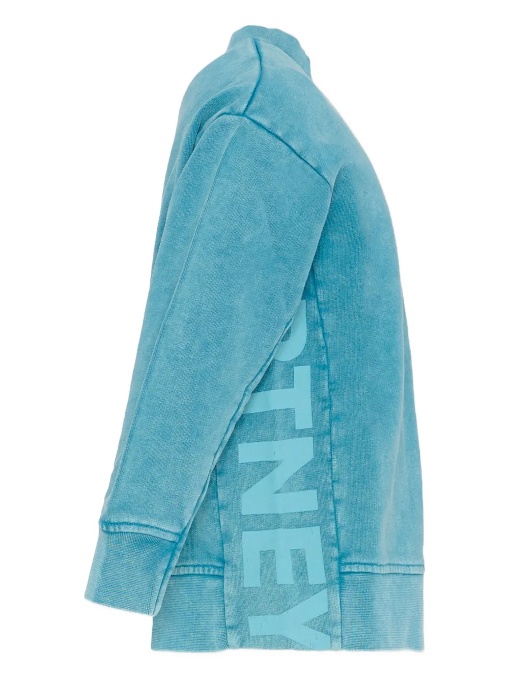 светло-голубой свитер с круглым вырезом, логотипом, длинными рукавами, ребристыми манжетами и ребристым низом