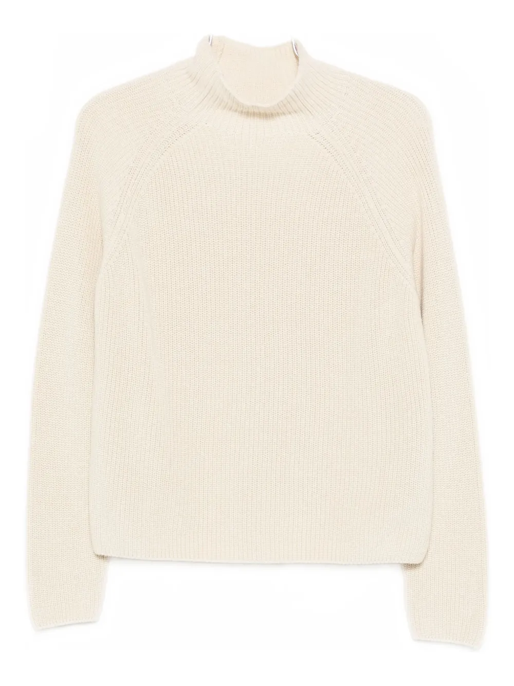 бежевый джемпер из органического хлопка с воротником-стойкой, рукавами-реглан и в рубчик