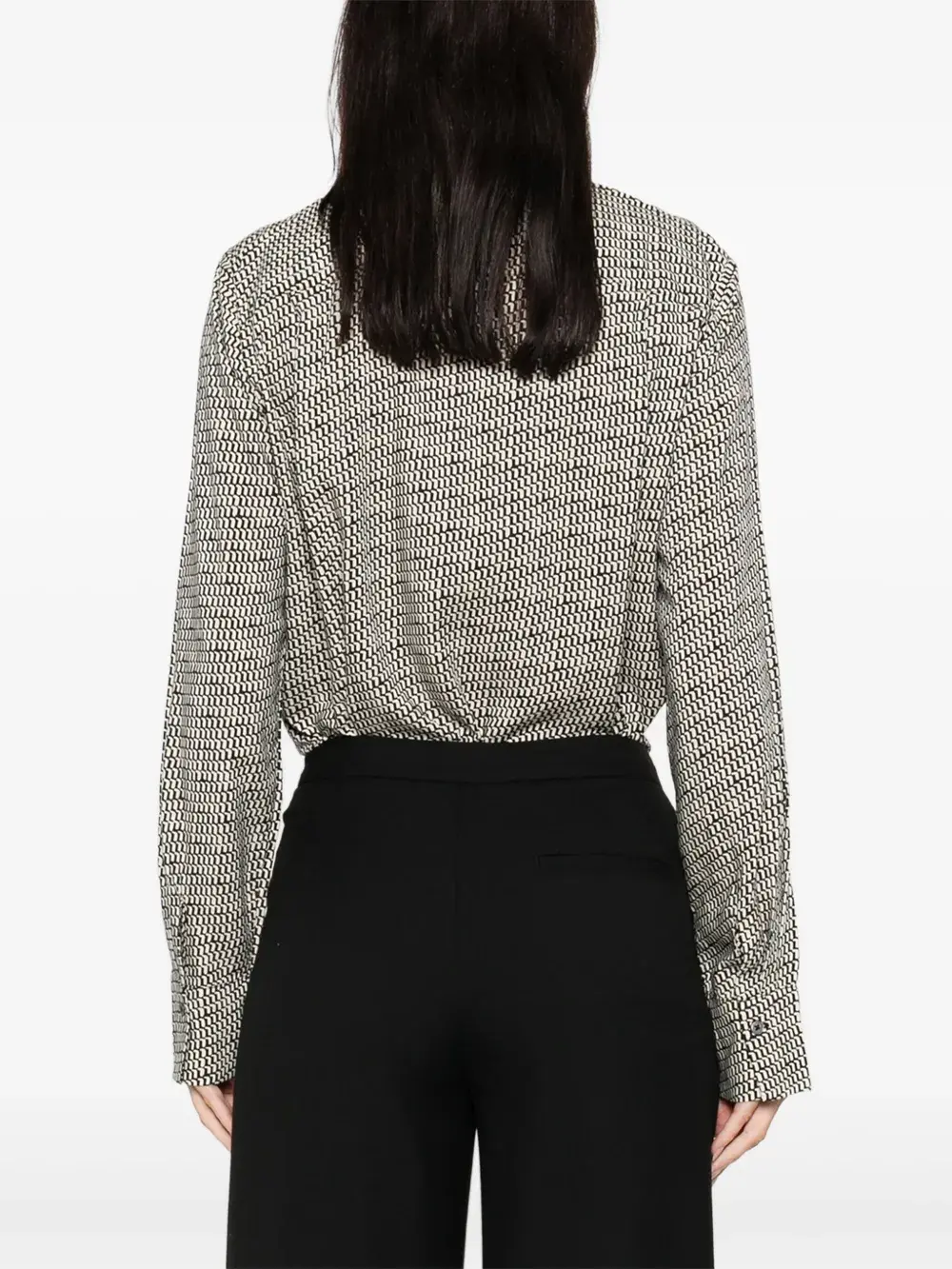 бежево-черный с узором, застежка на пуговицы, длинные рукава, воротник на стойке, манжеты на пуговицах