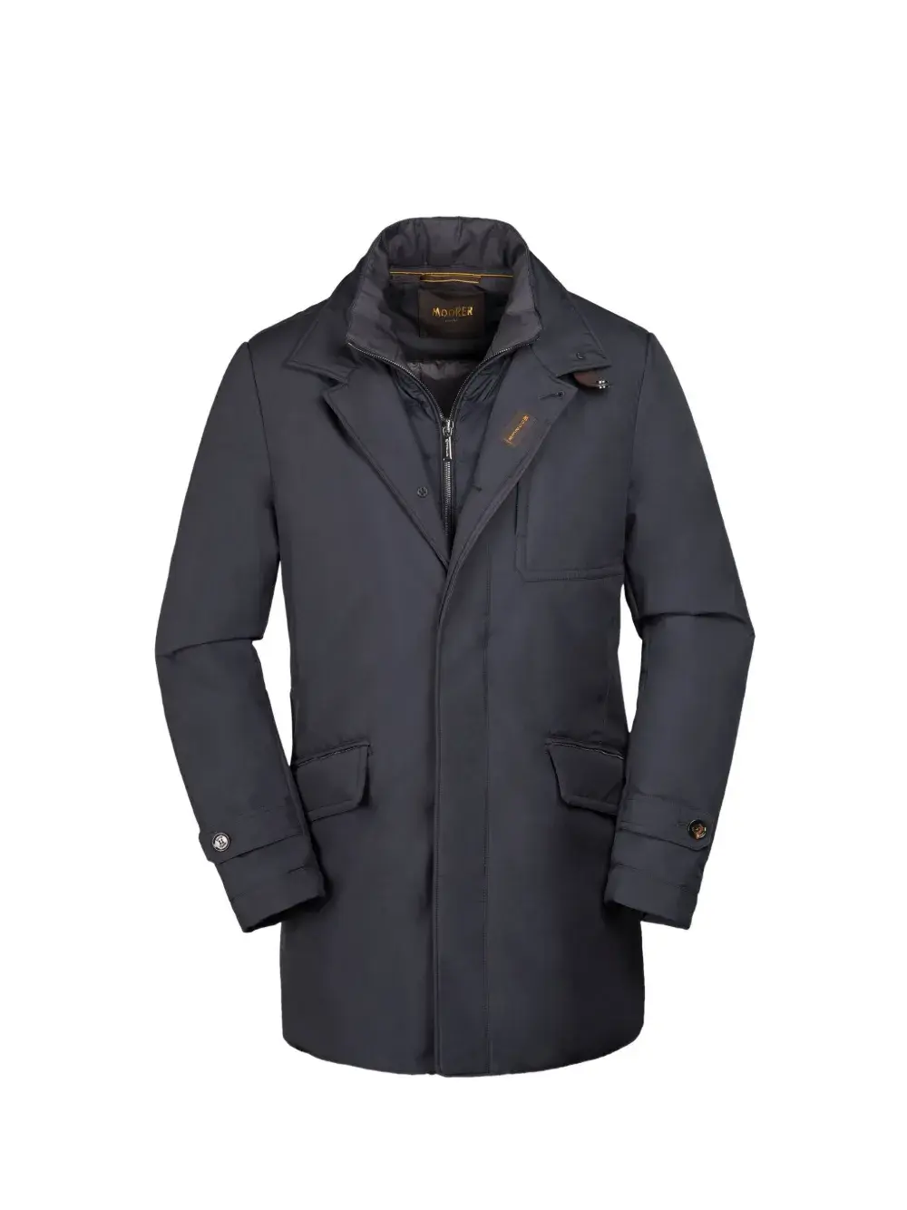 тёмно-синий многослойный дизайн высокий воротник потайная застёжка на пуговицы нагрудные карманы с клапанами длинные рукава манжеты на пуговицах прямой подол