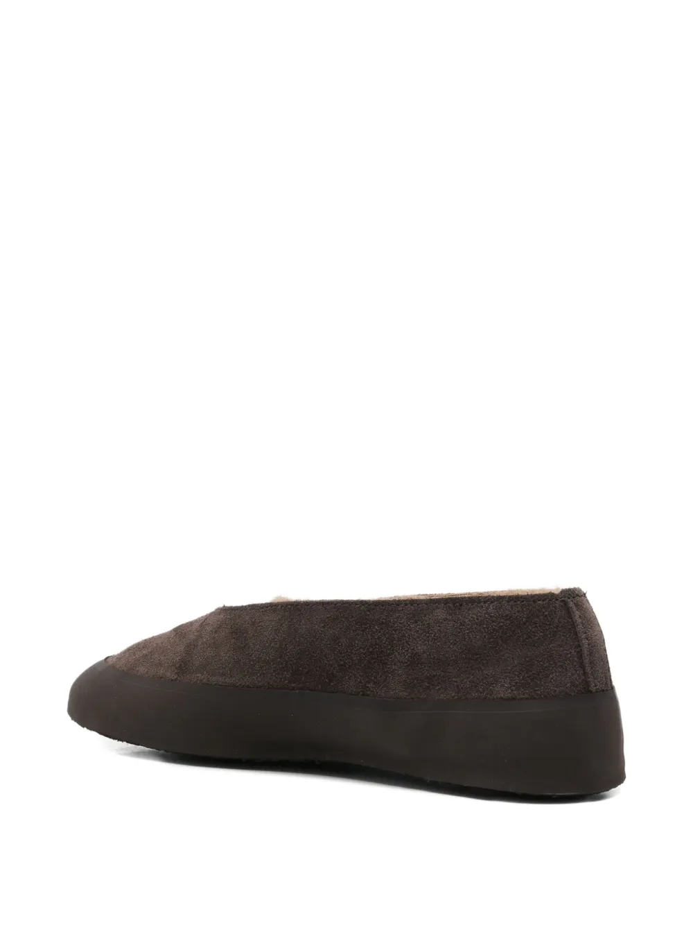 коричневые шлёпанцы из овчины с круглым носком, плоской подошвой и моделью без застежек