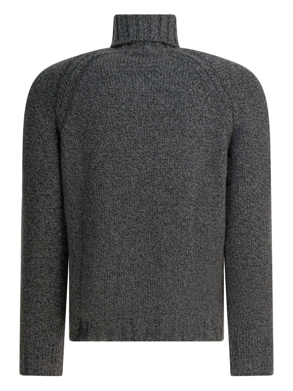 серый вязаный свитер с воротником-гольф и длинными рукавами