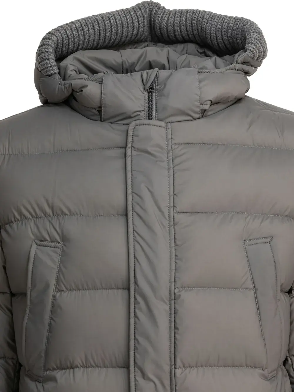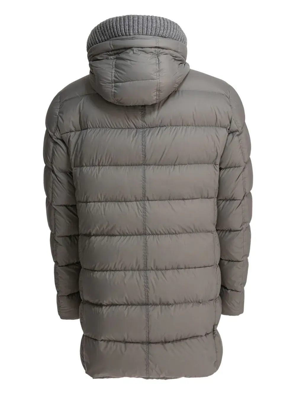 серый стеганый дизайн с капюшоном, застежкой-молнией и карманами