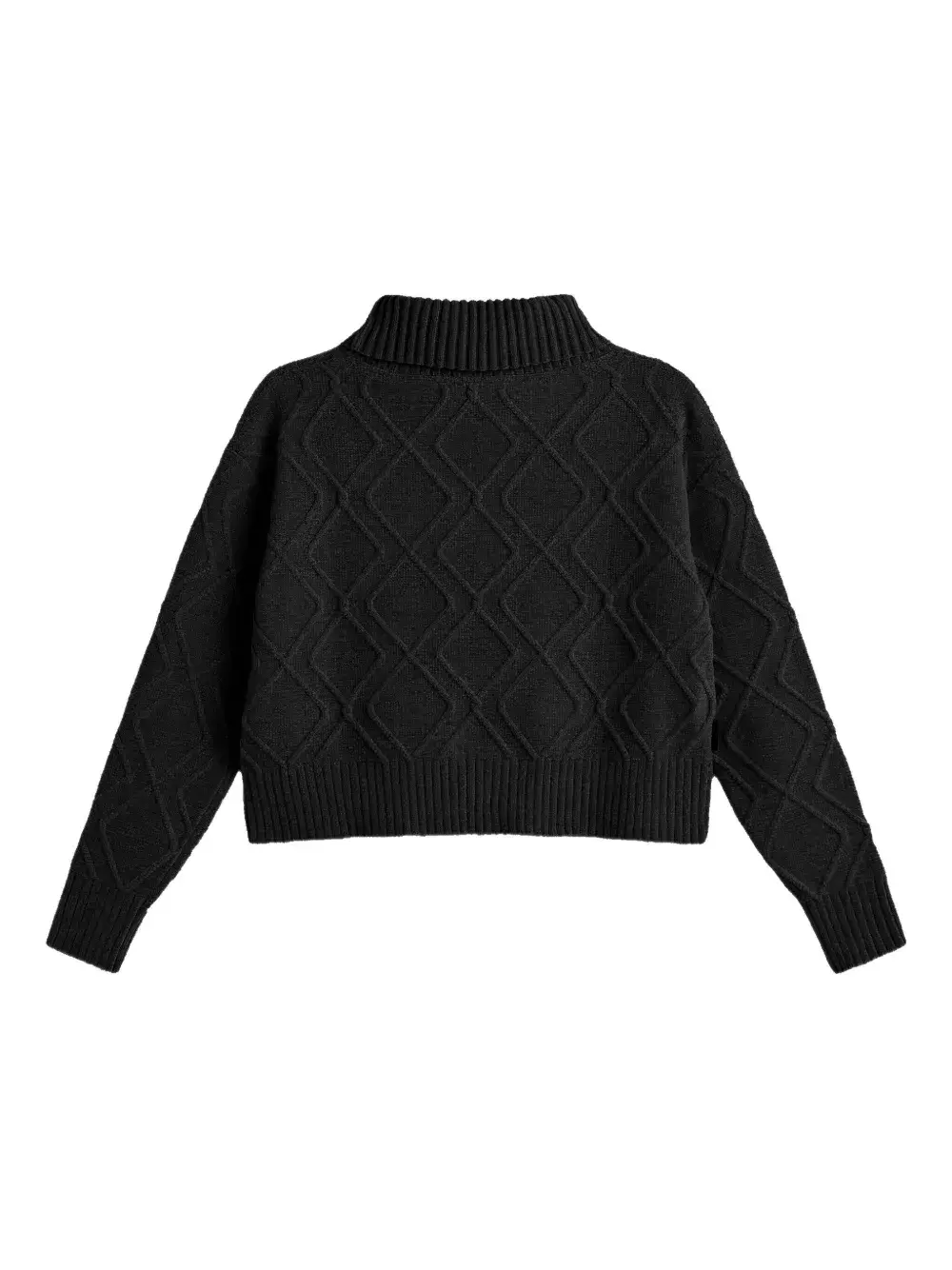 черный трехмерный ромбовидный узор, воротник вулкано, ребристый низ, длинные рукава, ребристые манжеты