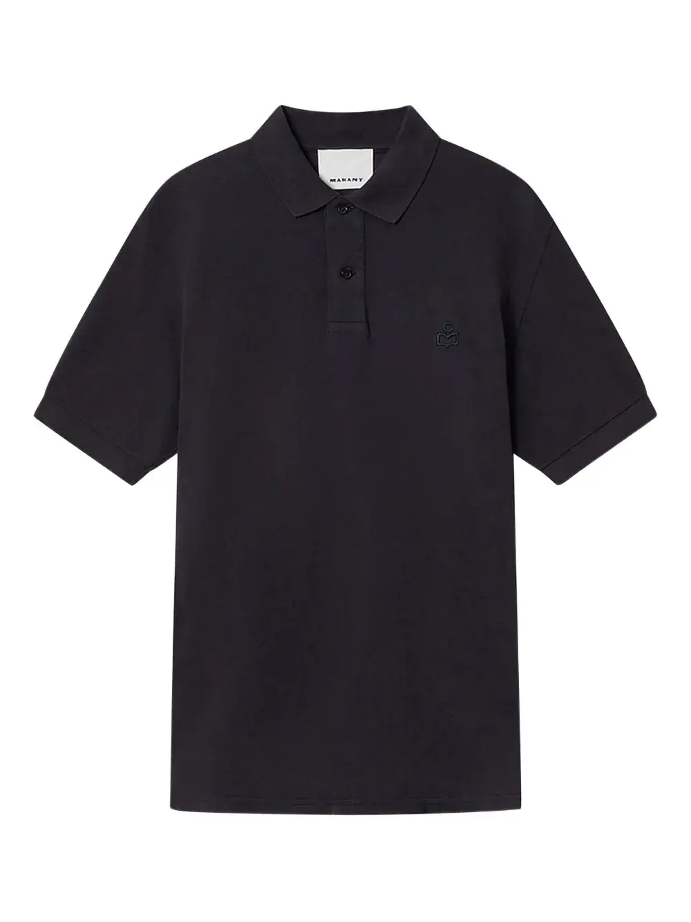 тёмно-синее поло из хлопка с короткими рукавами, вышитыми деталями, застёжкой на пуговицы и отложным воротником