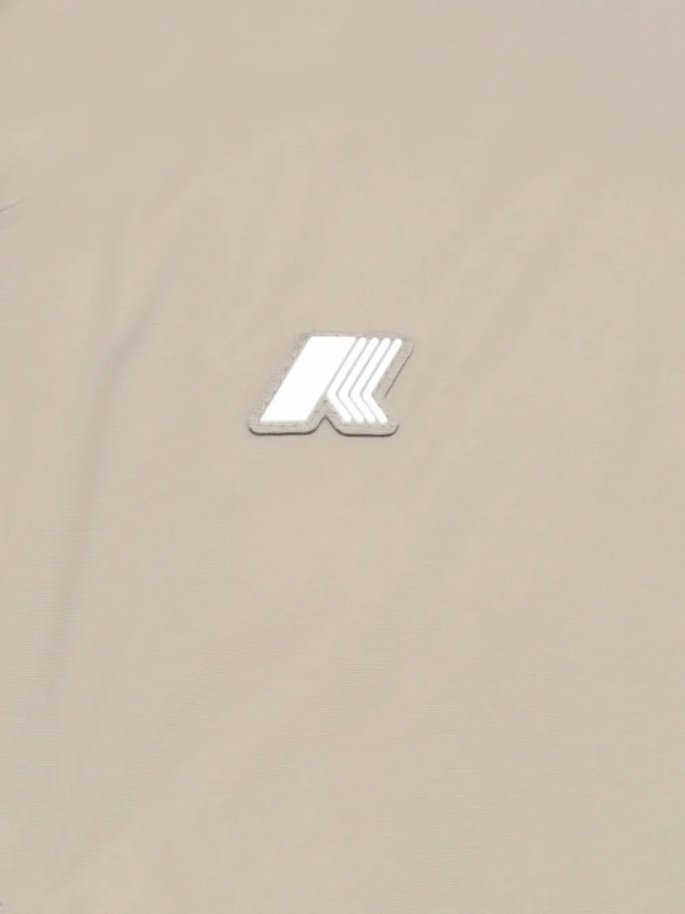 нейтральные оттенки, нашивка с логотипом, накладные карманы на фронте, высокий ворот, застежка на молнии