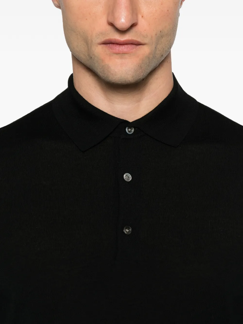 черная рубашка с длинными рукавами, застежкой на пуговицы спереди и прямым подолом