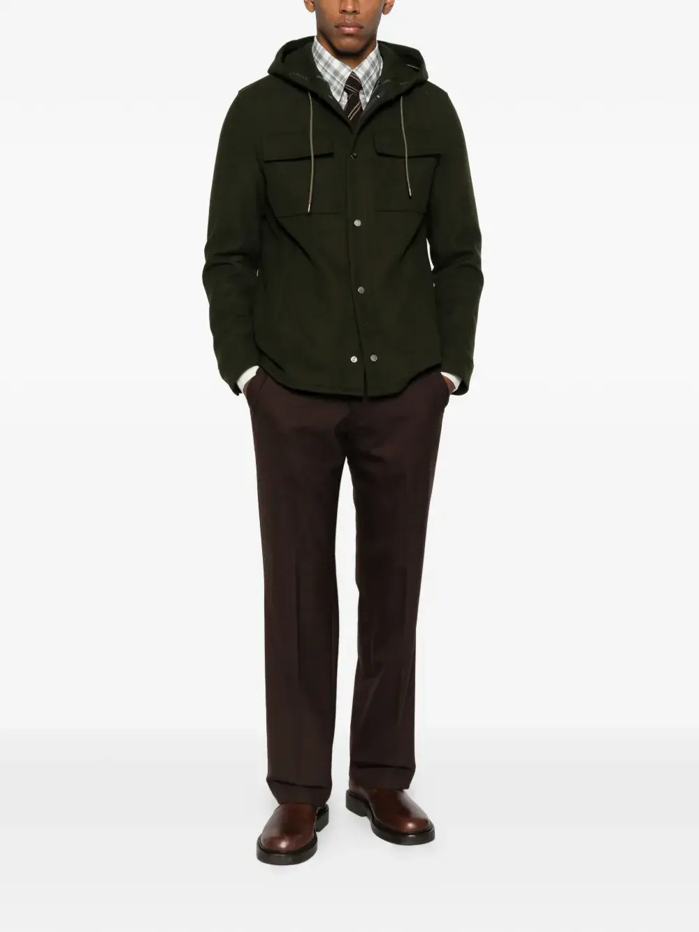 зеленый худи на пуговицах с нагрудными карманами, длинными рукавами и боковыми прорезными карманами